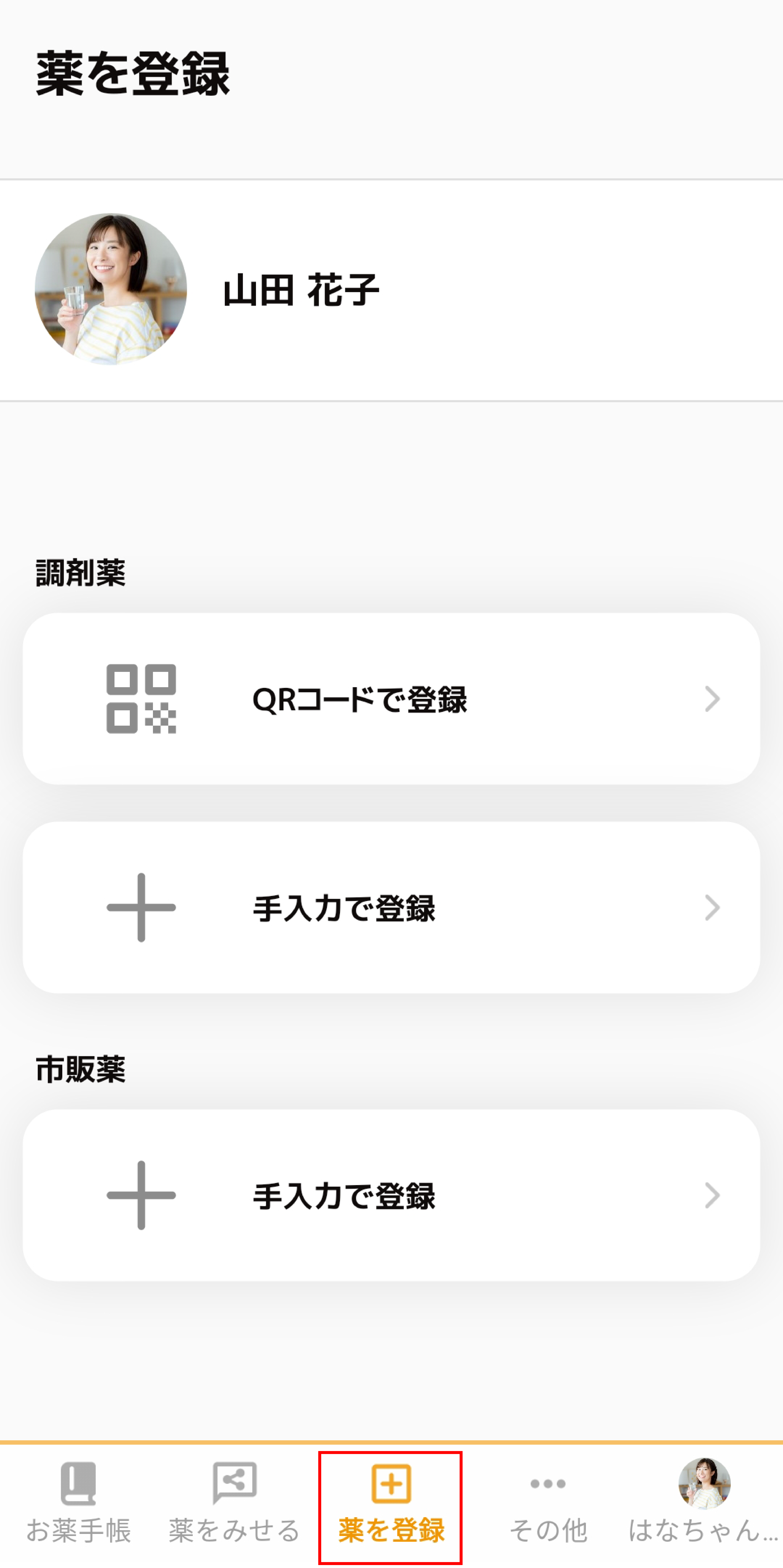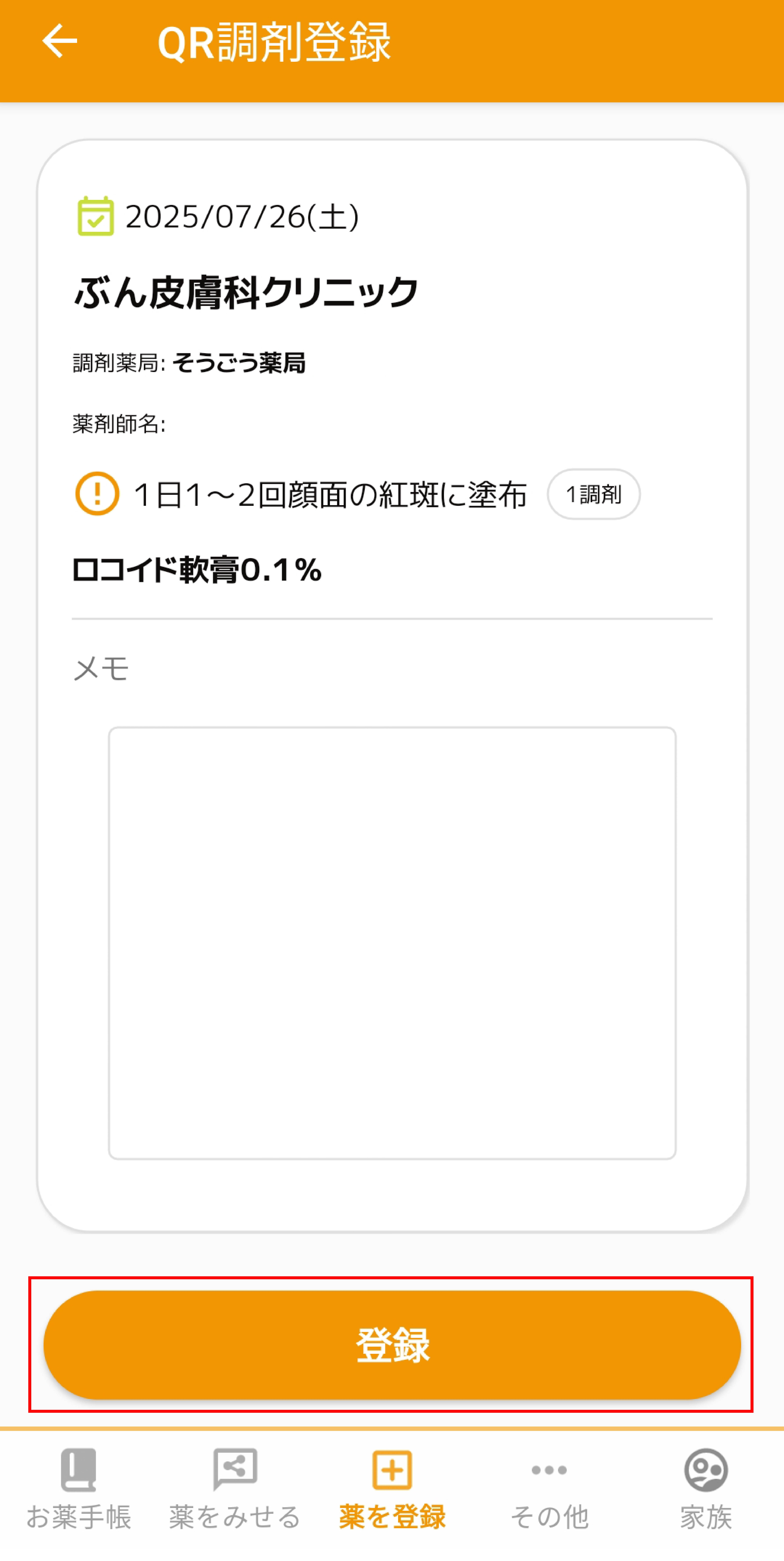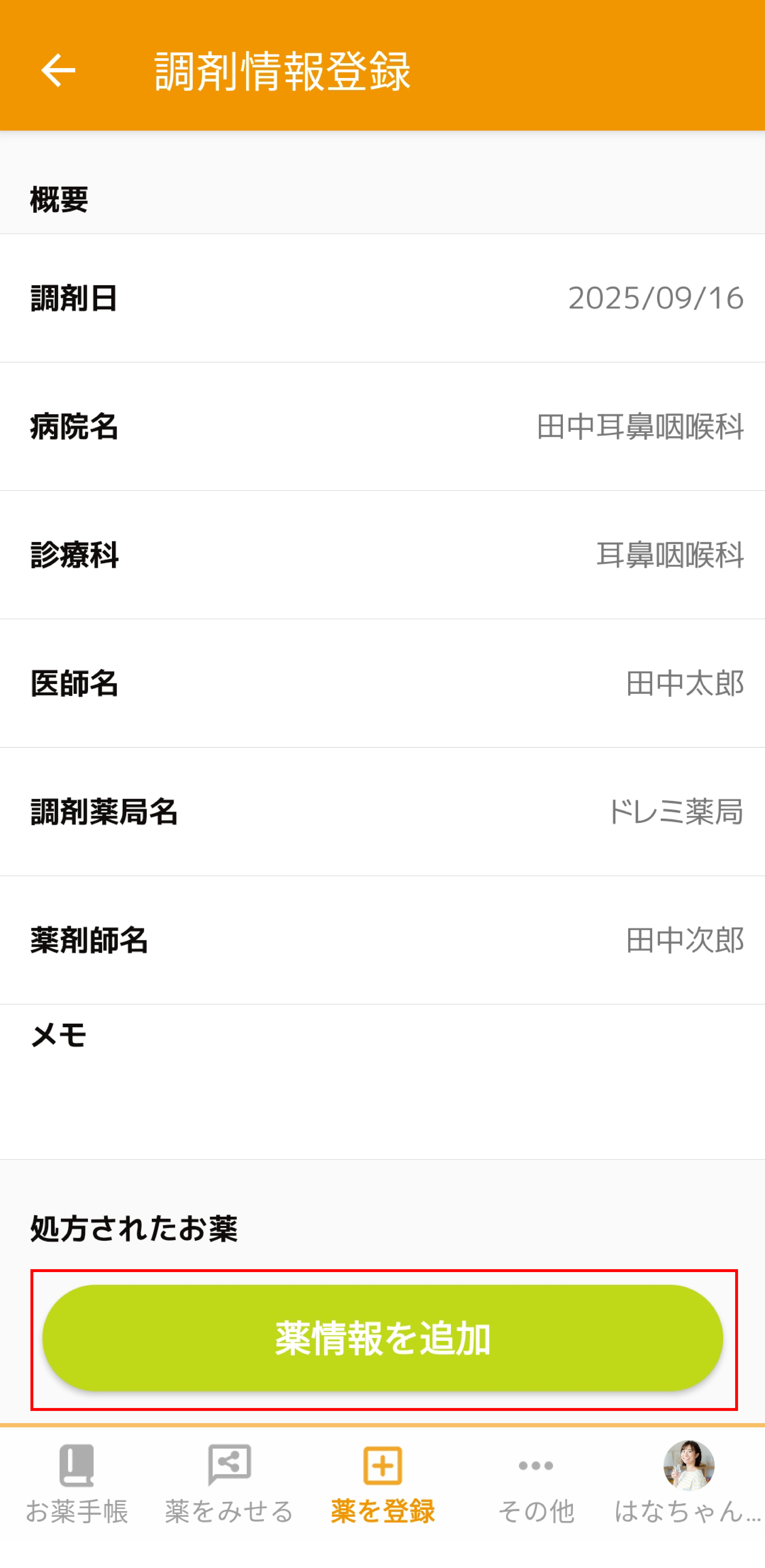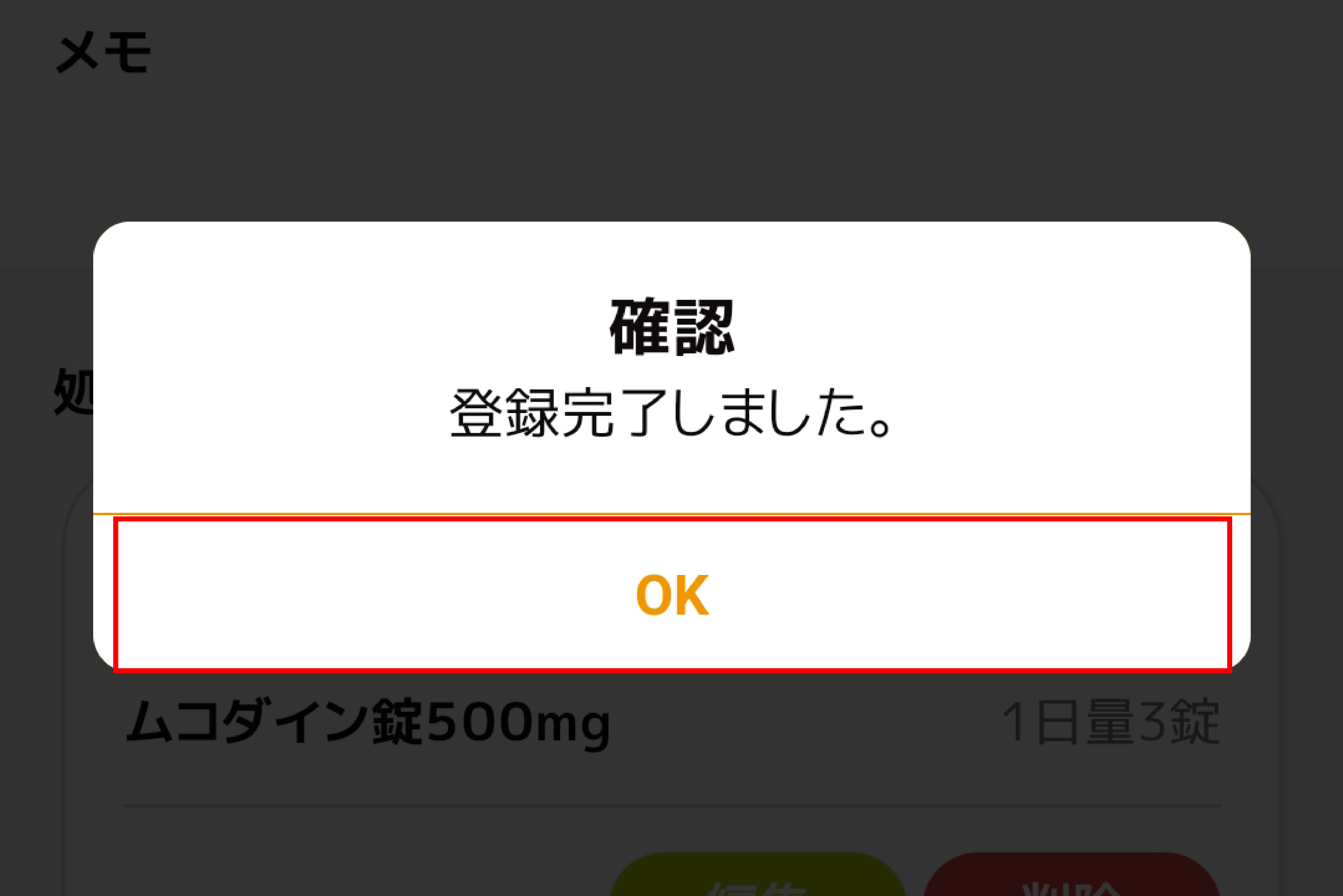 薬情報の追加ができると「登録」がタップできる様になるので、