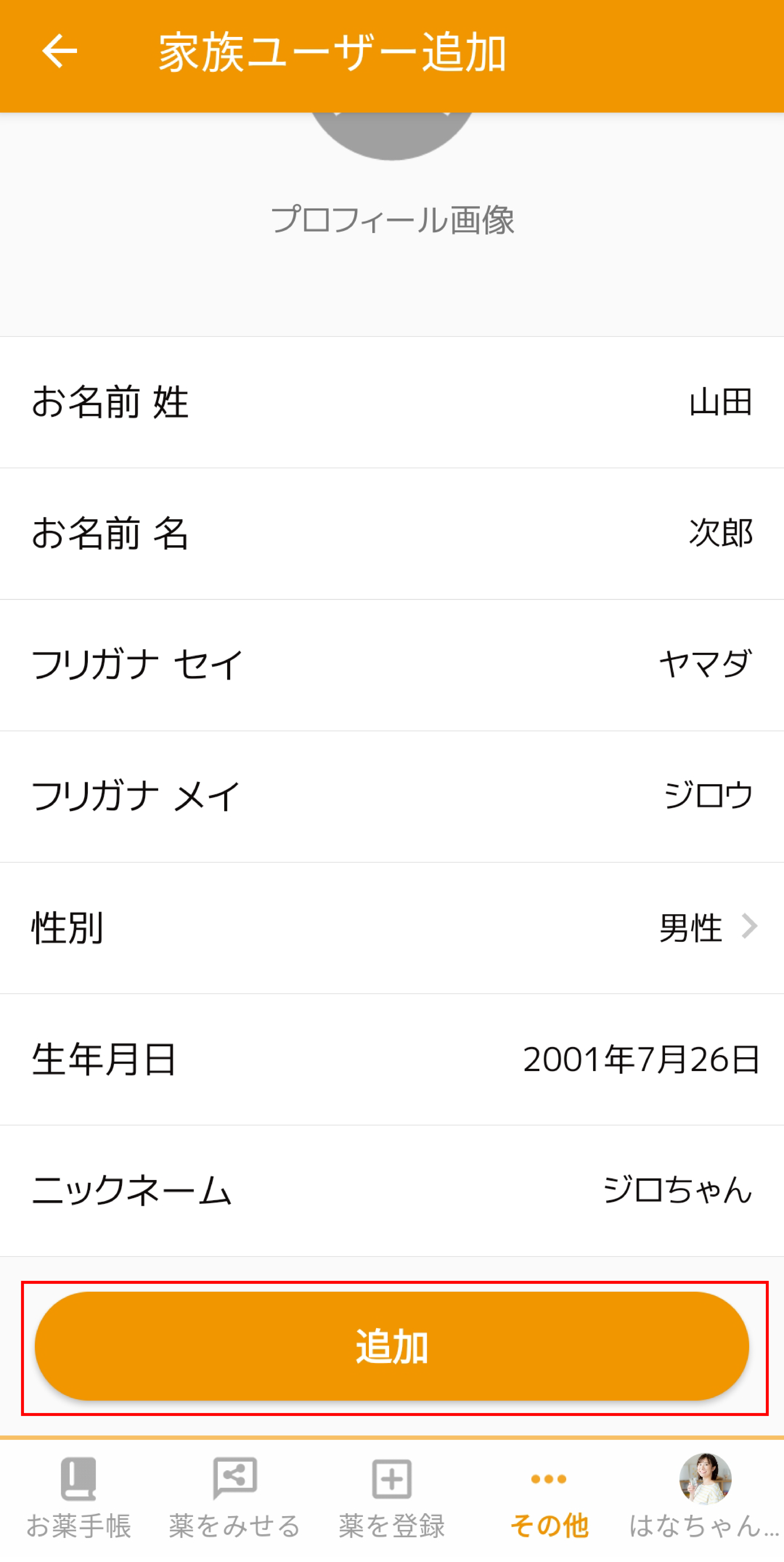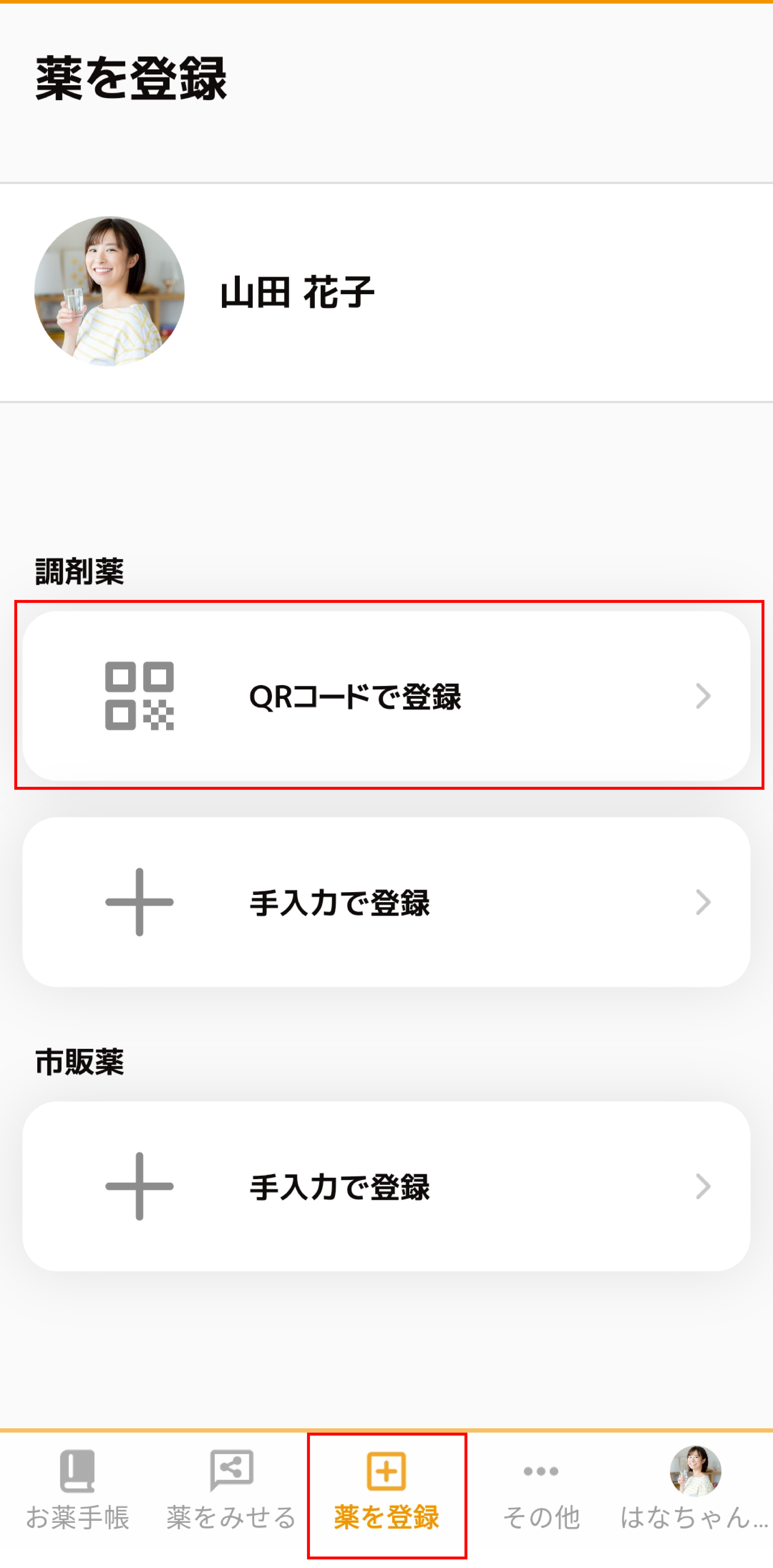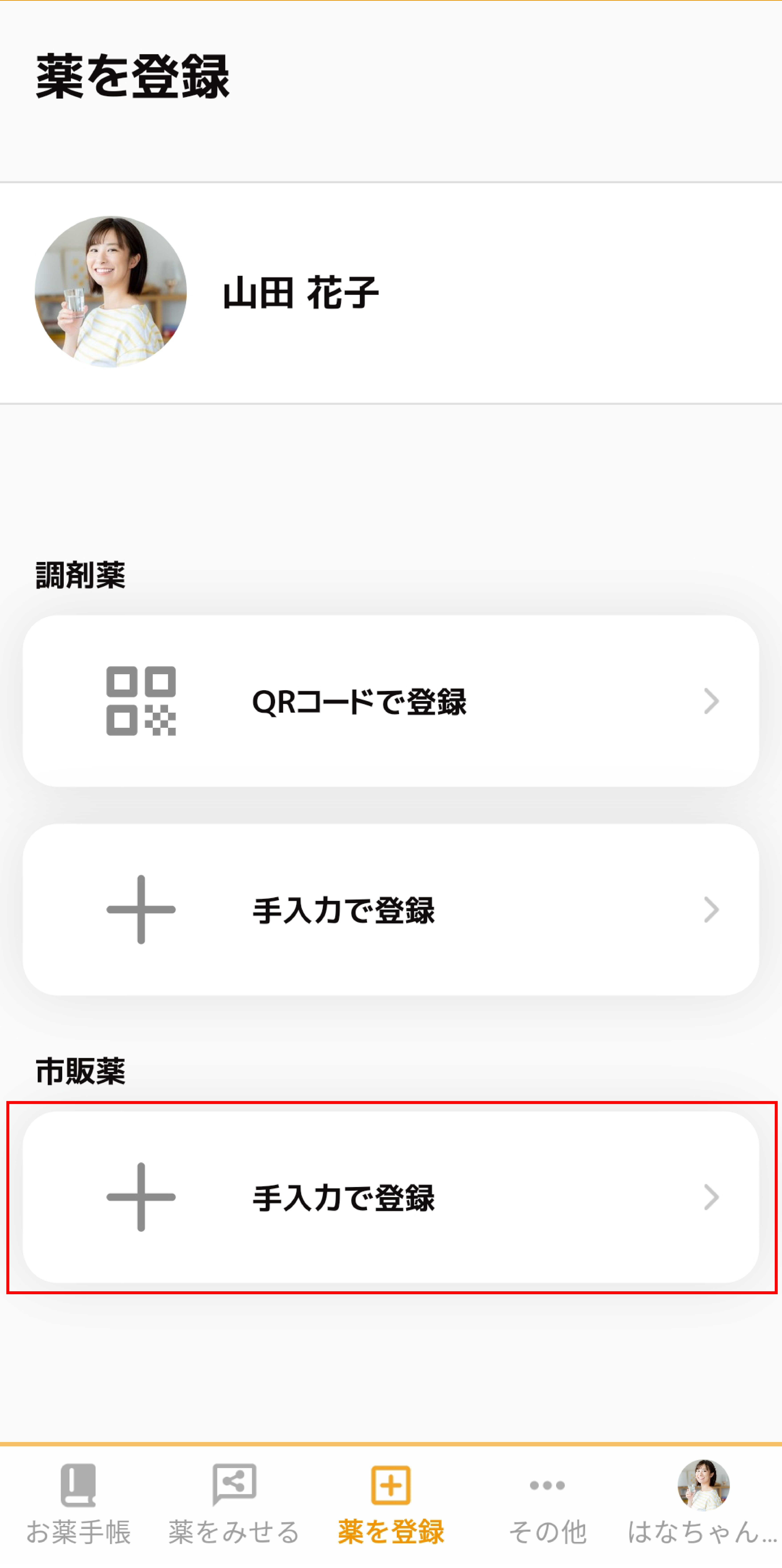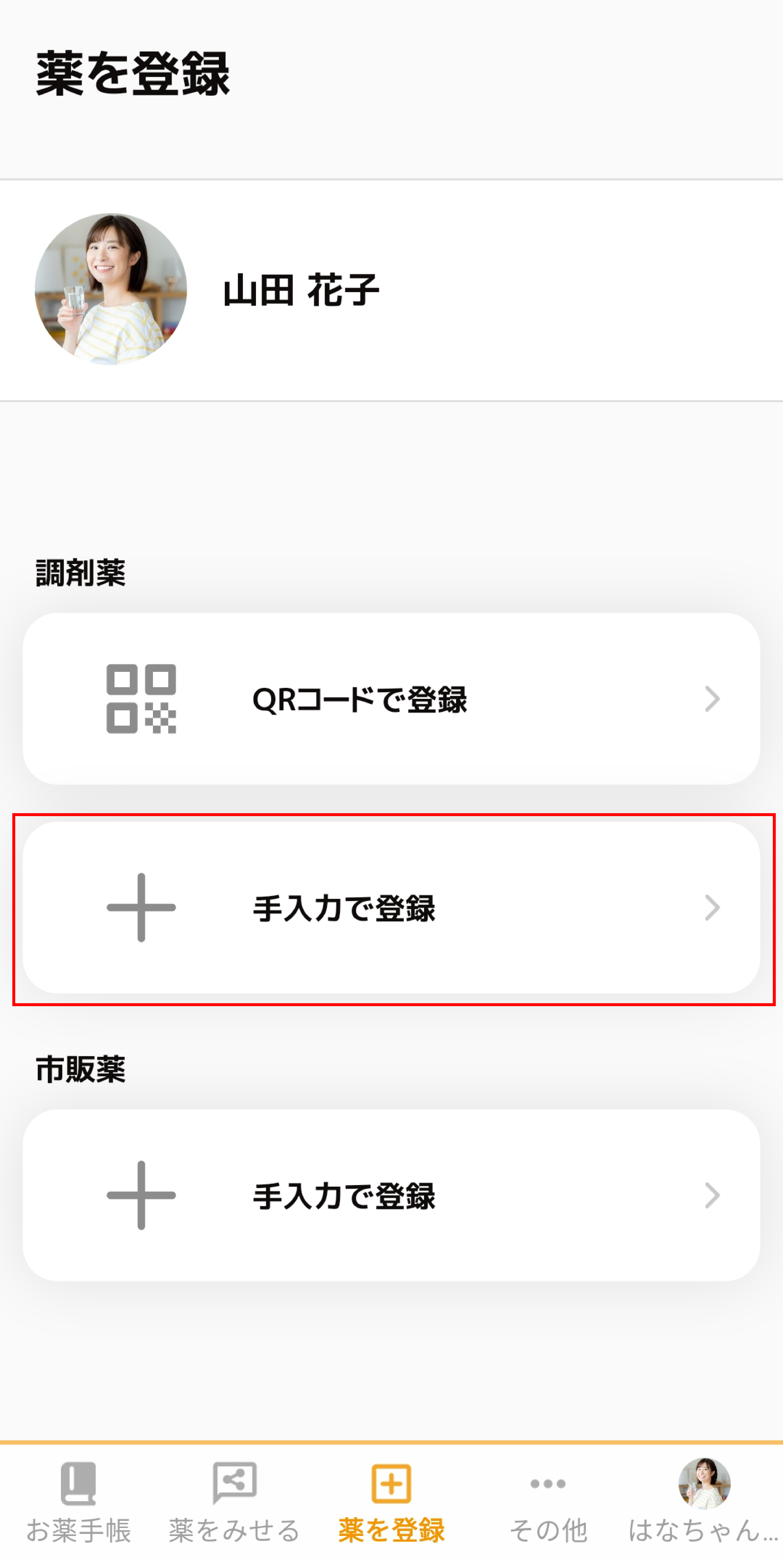薬情報の追加ができると「登録」がタップできる様になるので、
