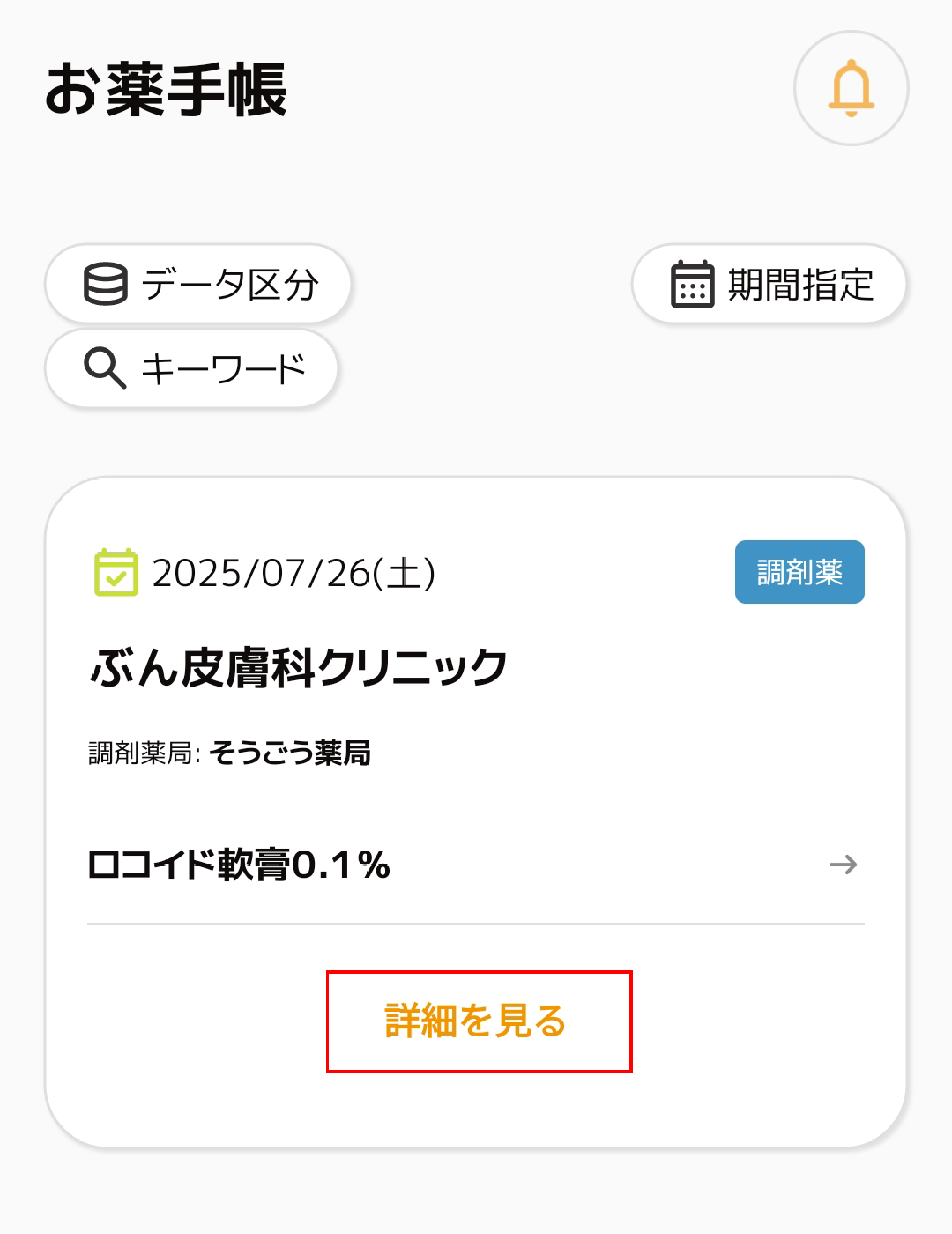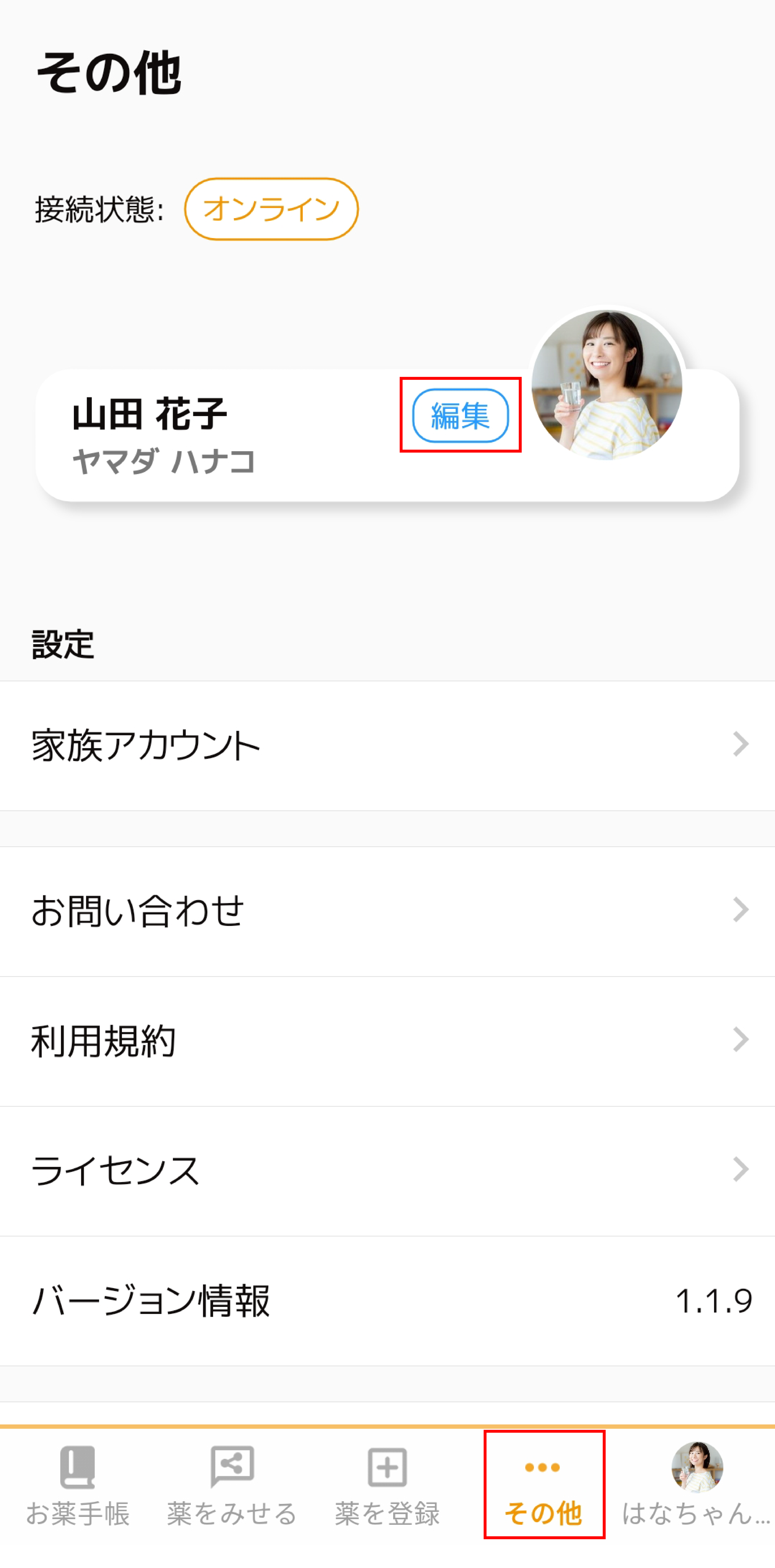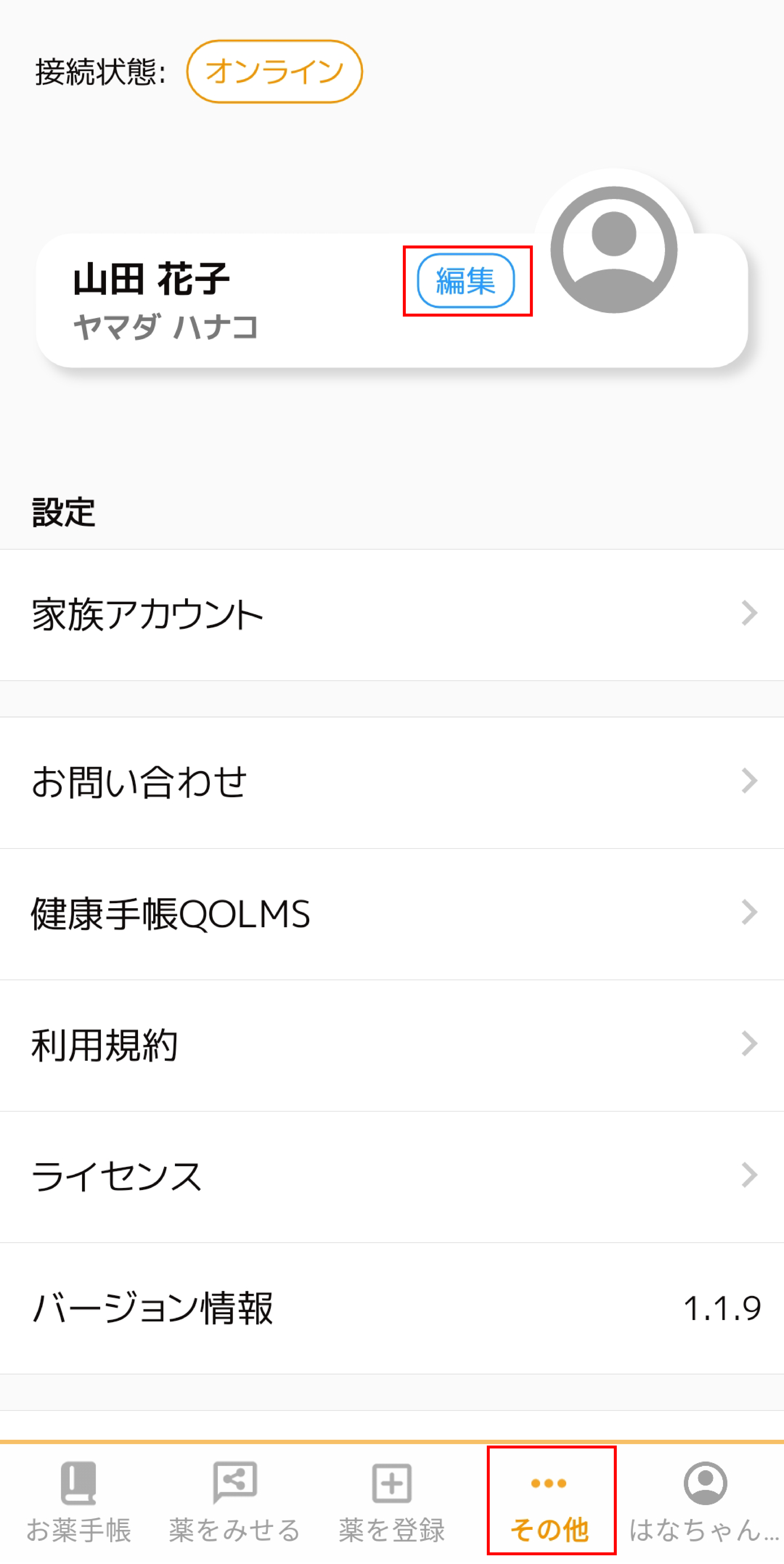 接続状態がオンラインの場合、お薬手帳内のデータが更新されると