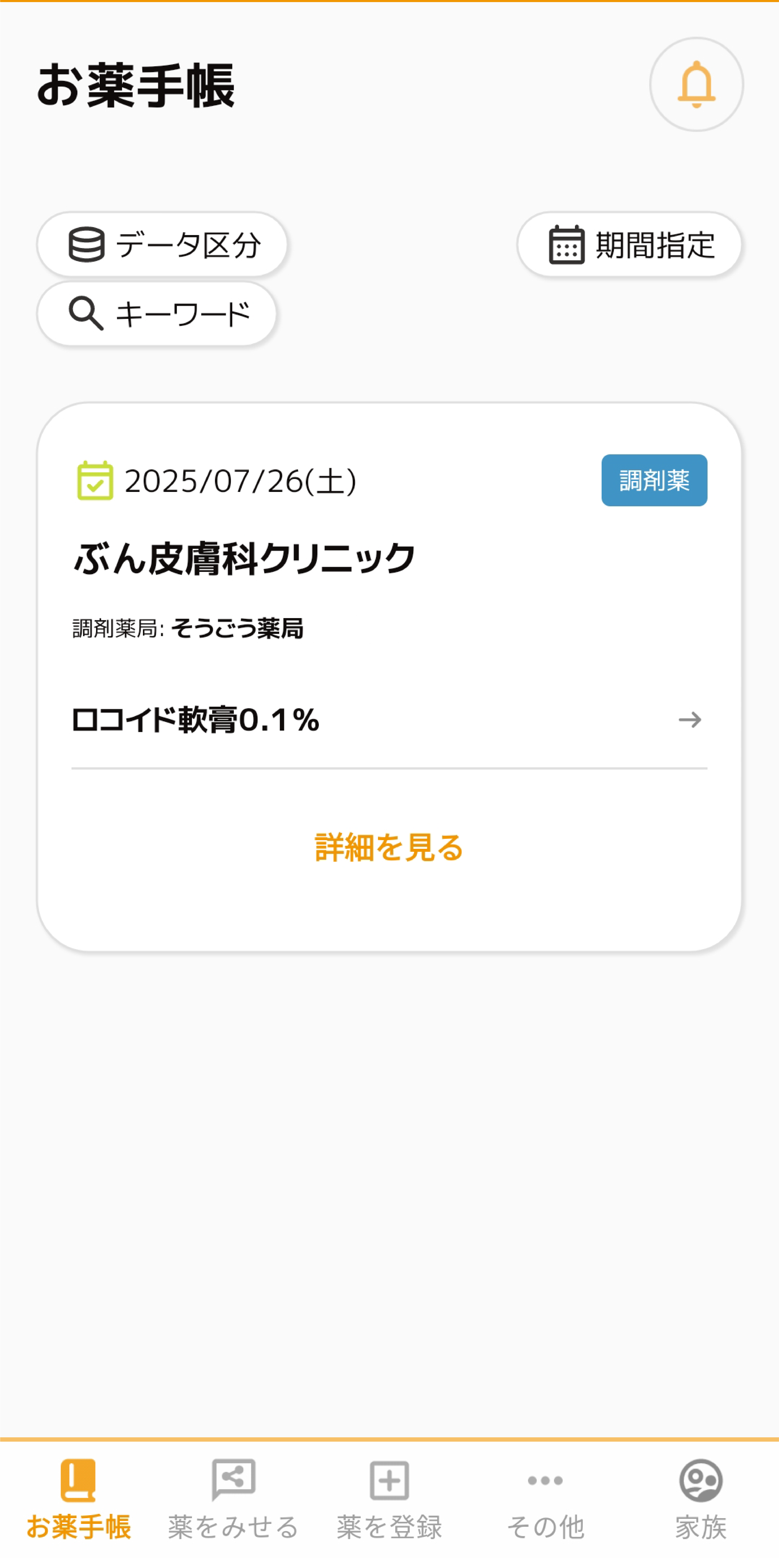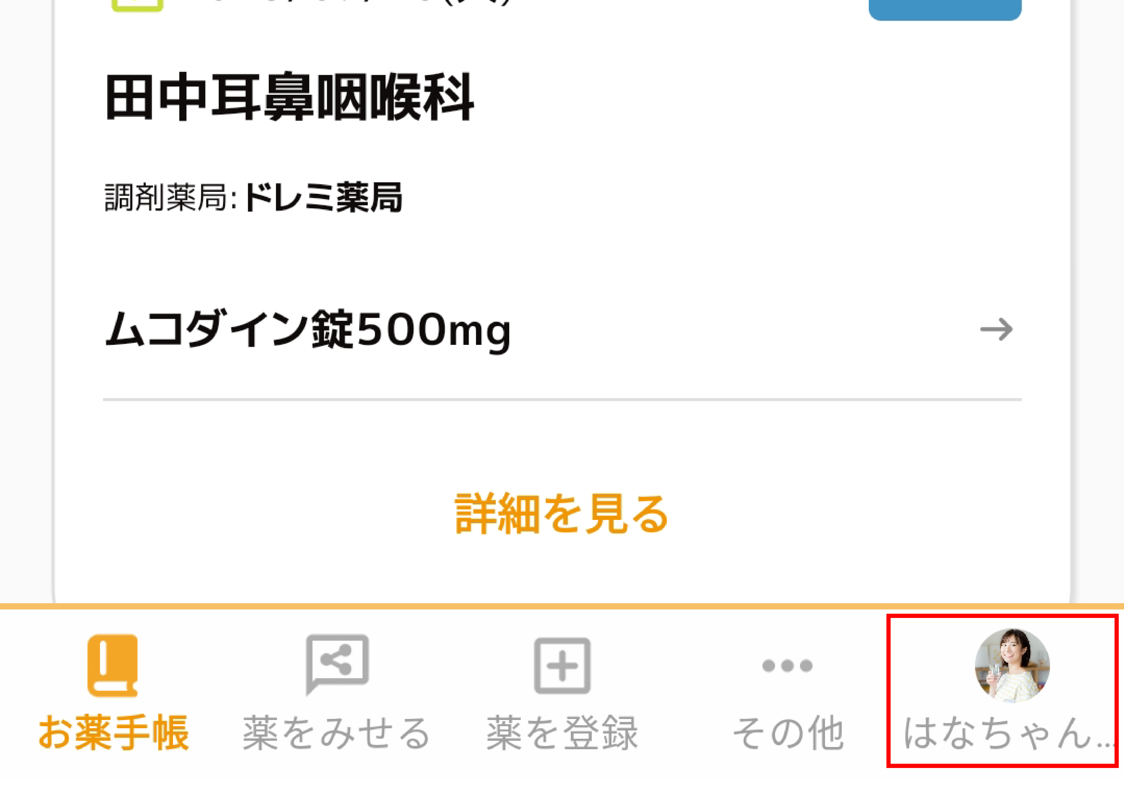お薬手帳のTOPページで登録したお薬が表示されます。