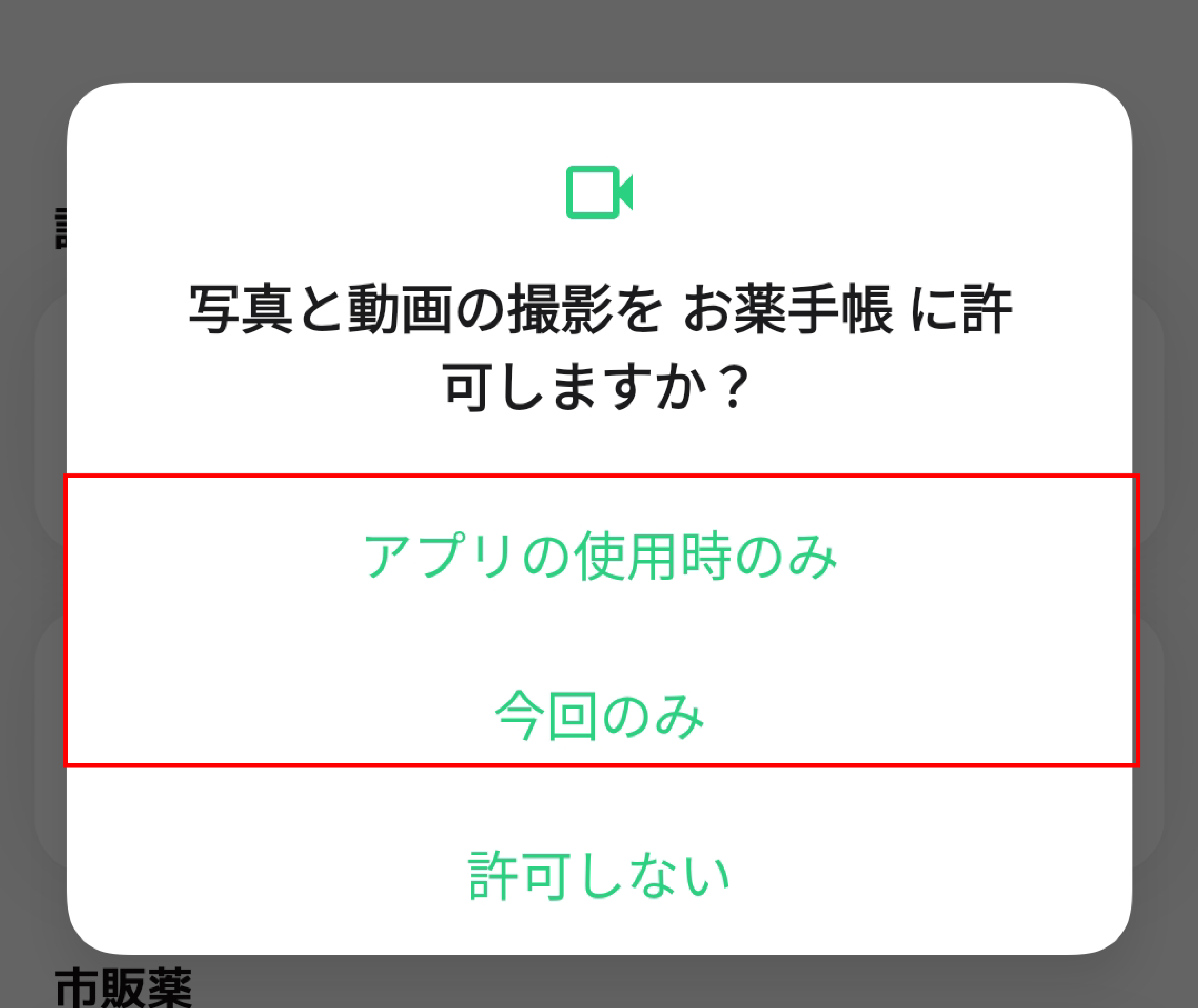 「アプリ使用時のみ」もしくは「今回のみ」を選択し、