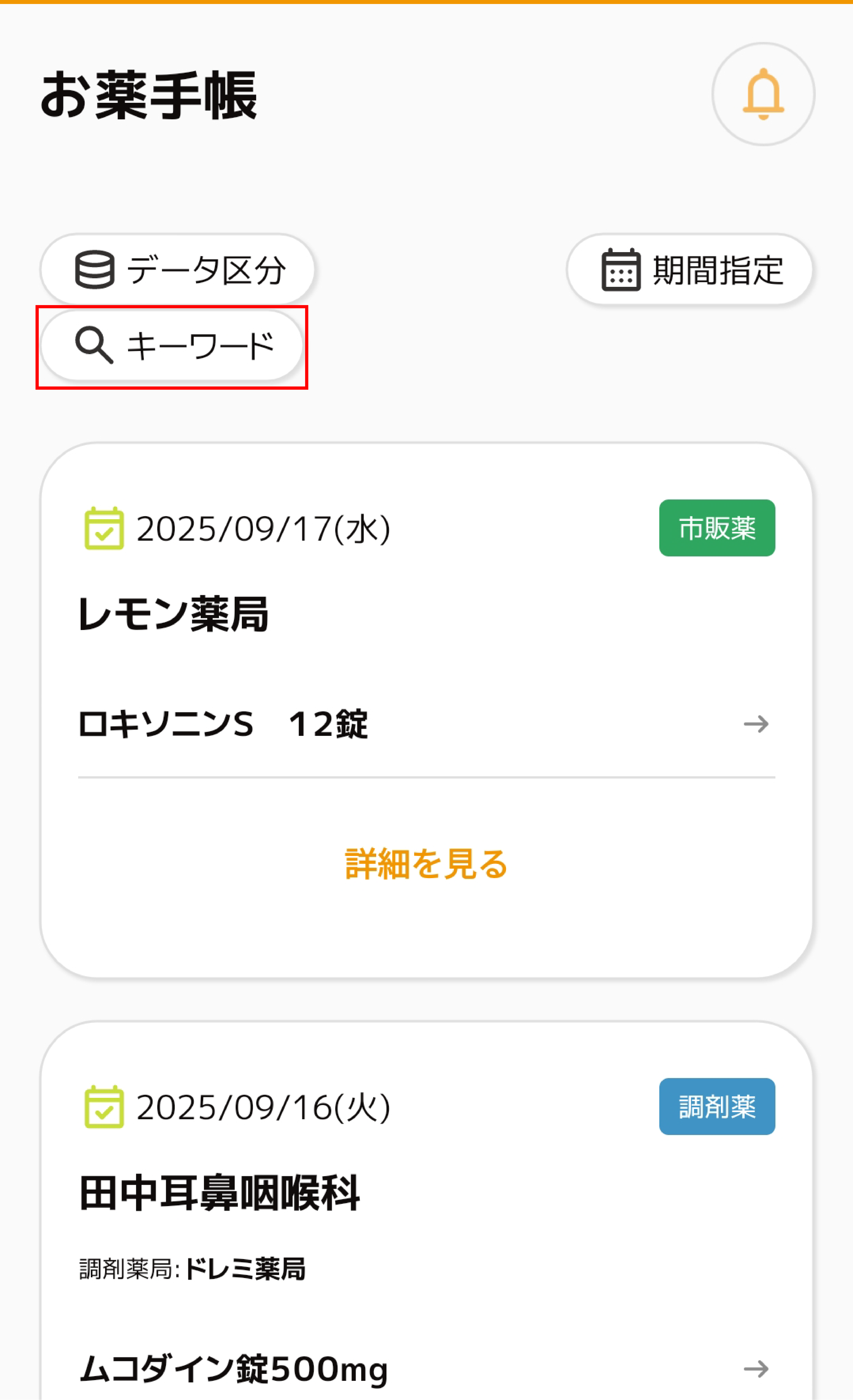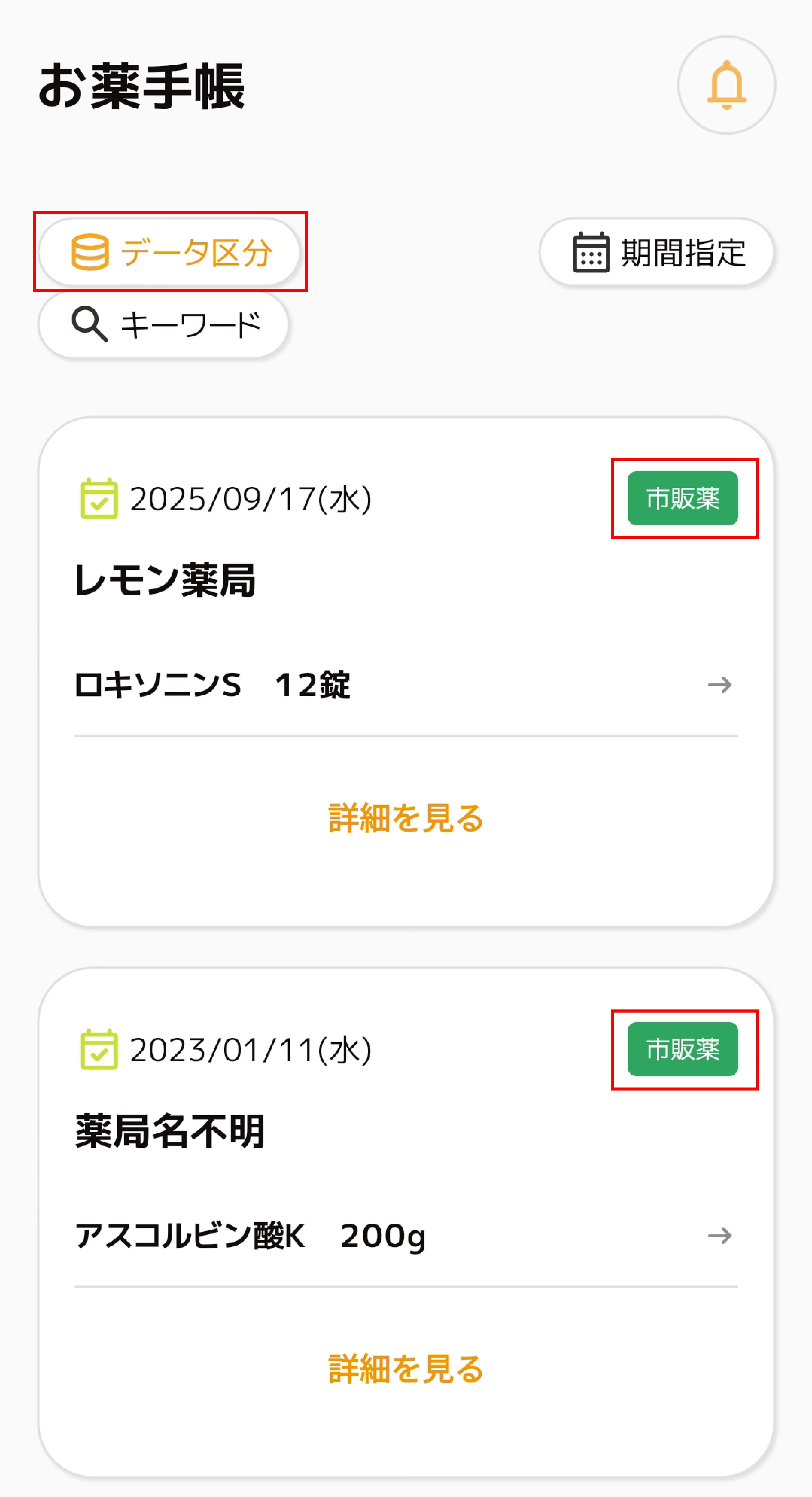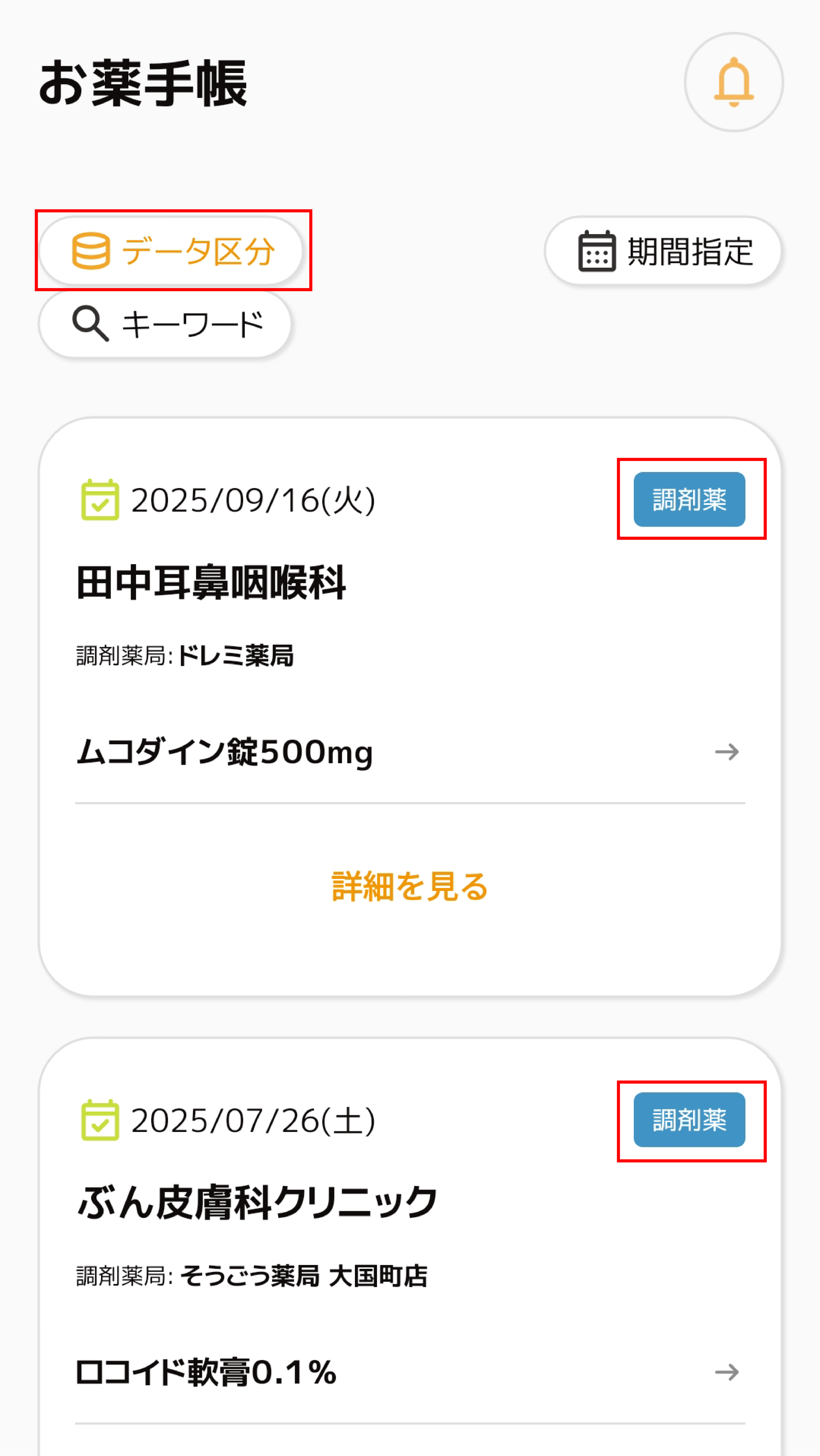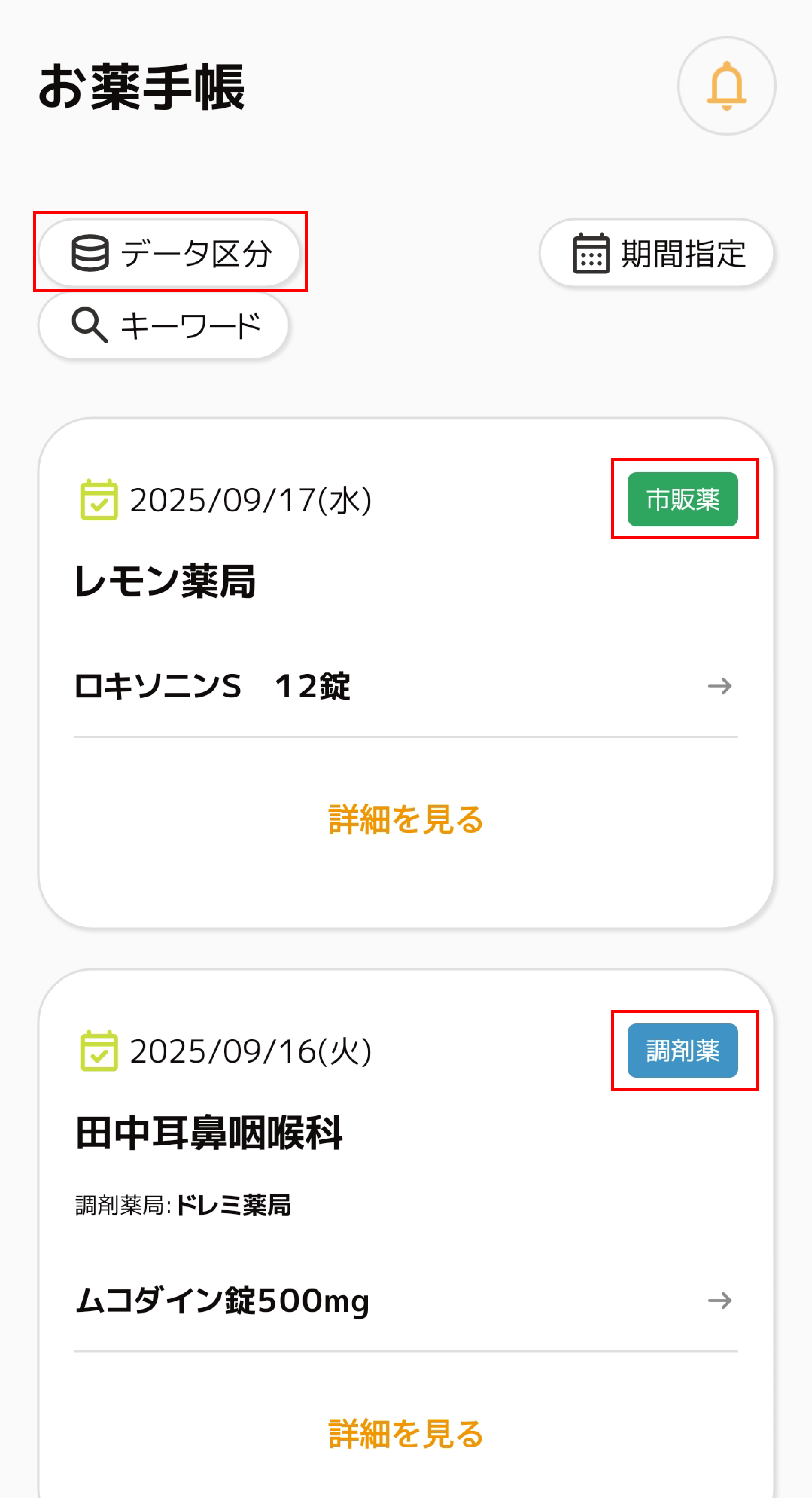 絞り込みが解除されて調剤薬、市販薬どちらも表示されます。