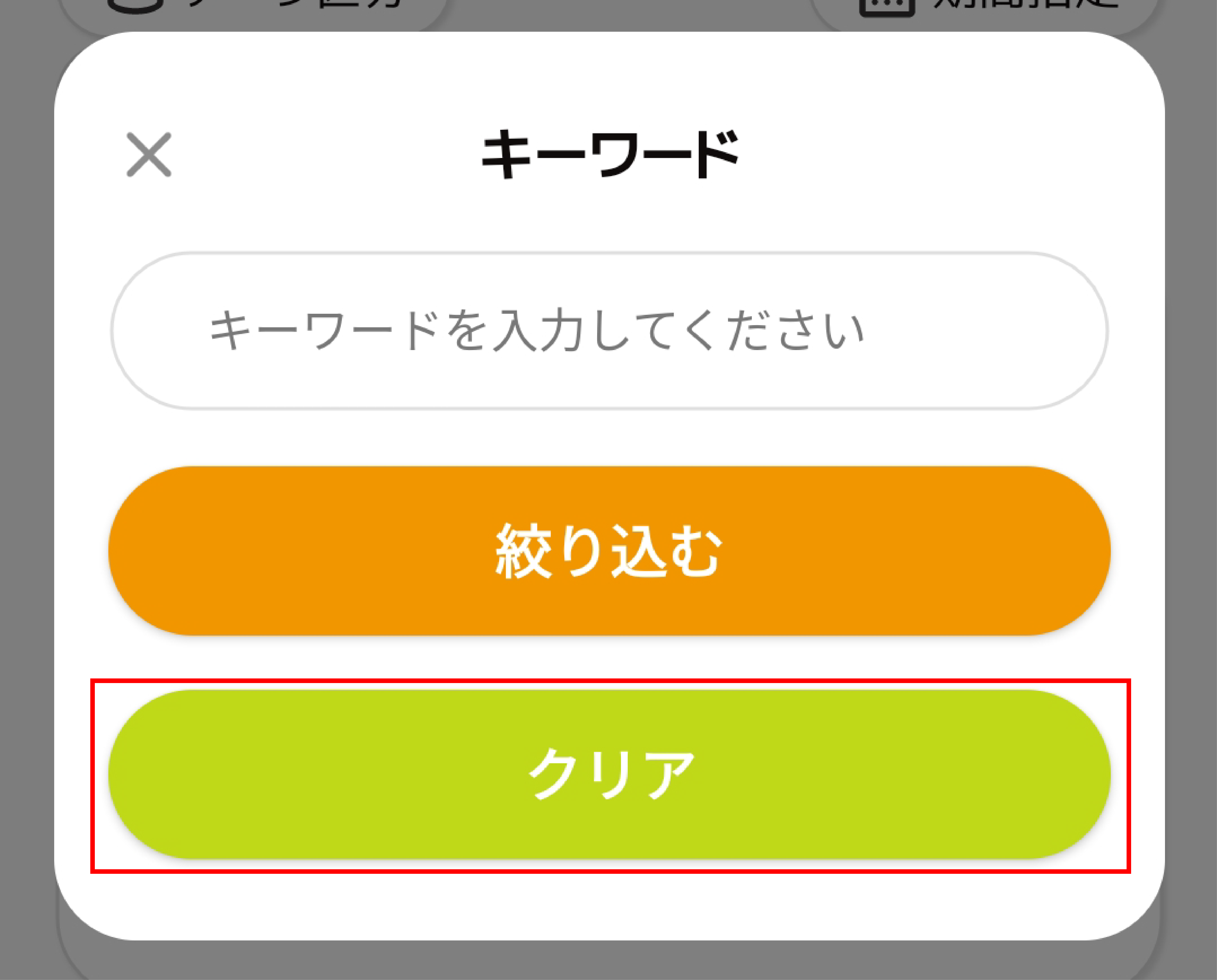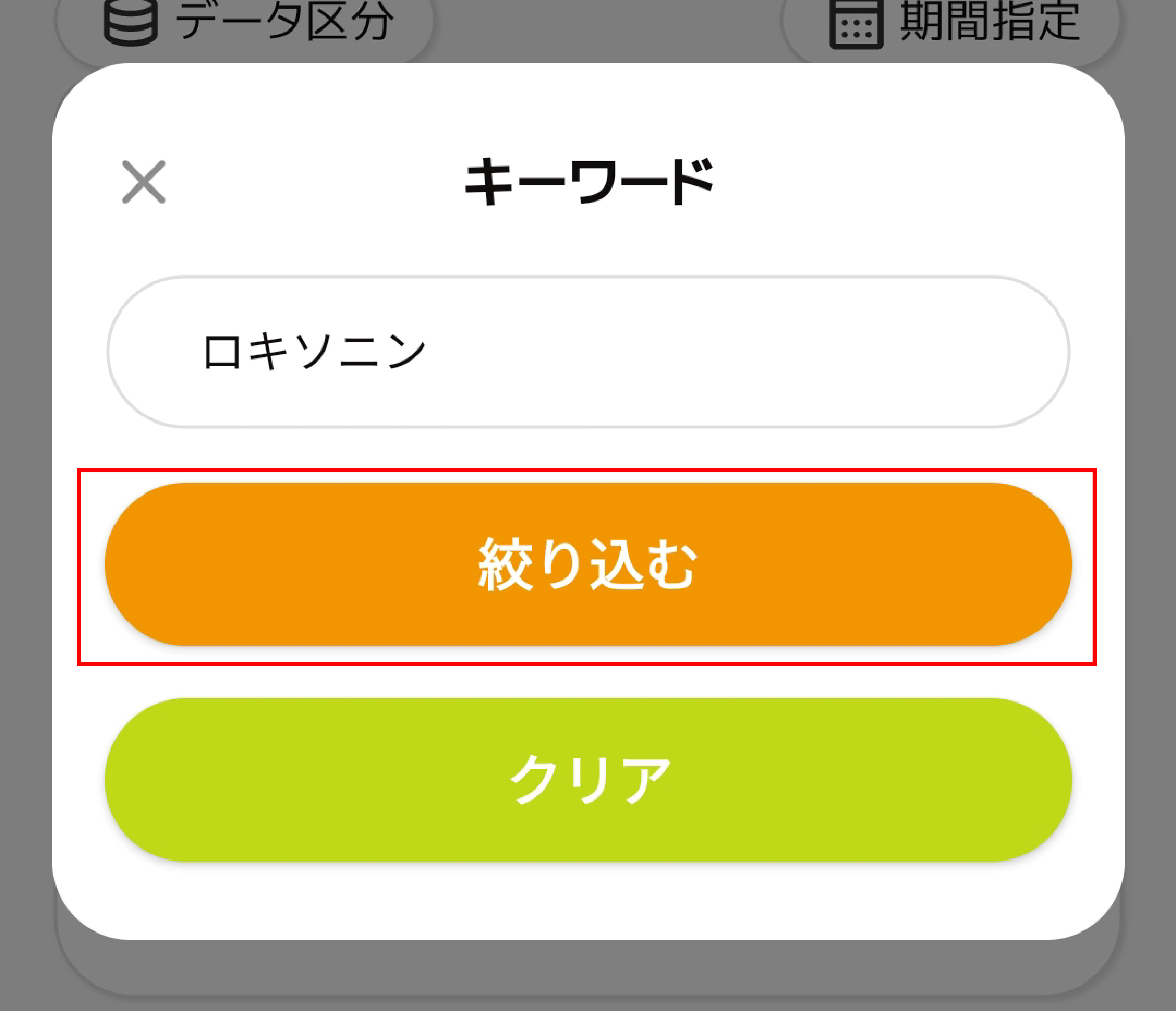 キーワード入力画面でキーワードを入力し「絞り込む」をタップします。