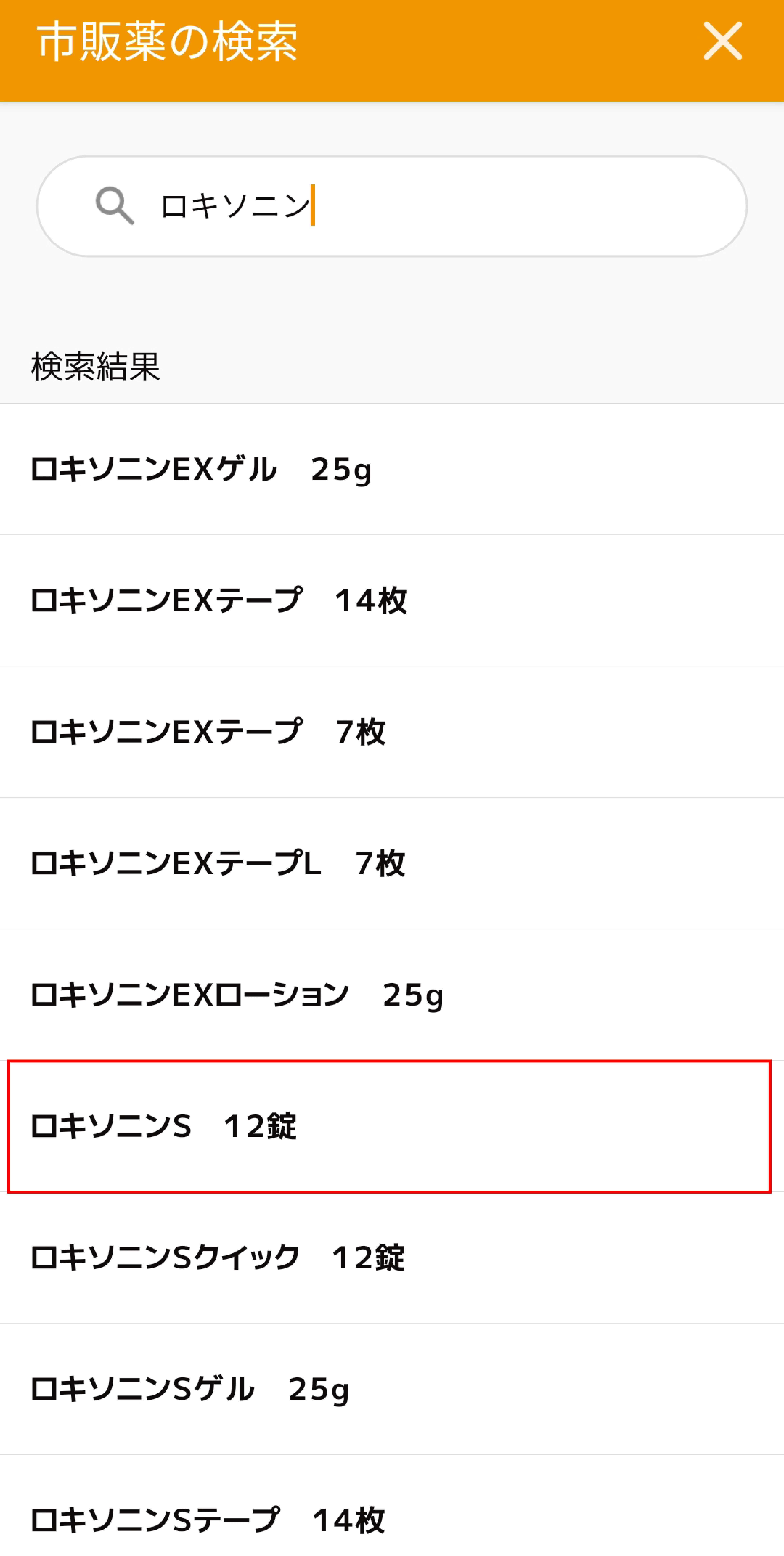 すると、ロキソニンが含まれたお薬情報が表示されます。