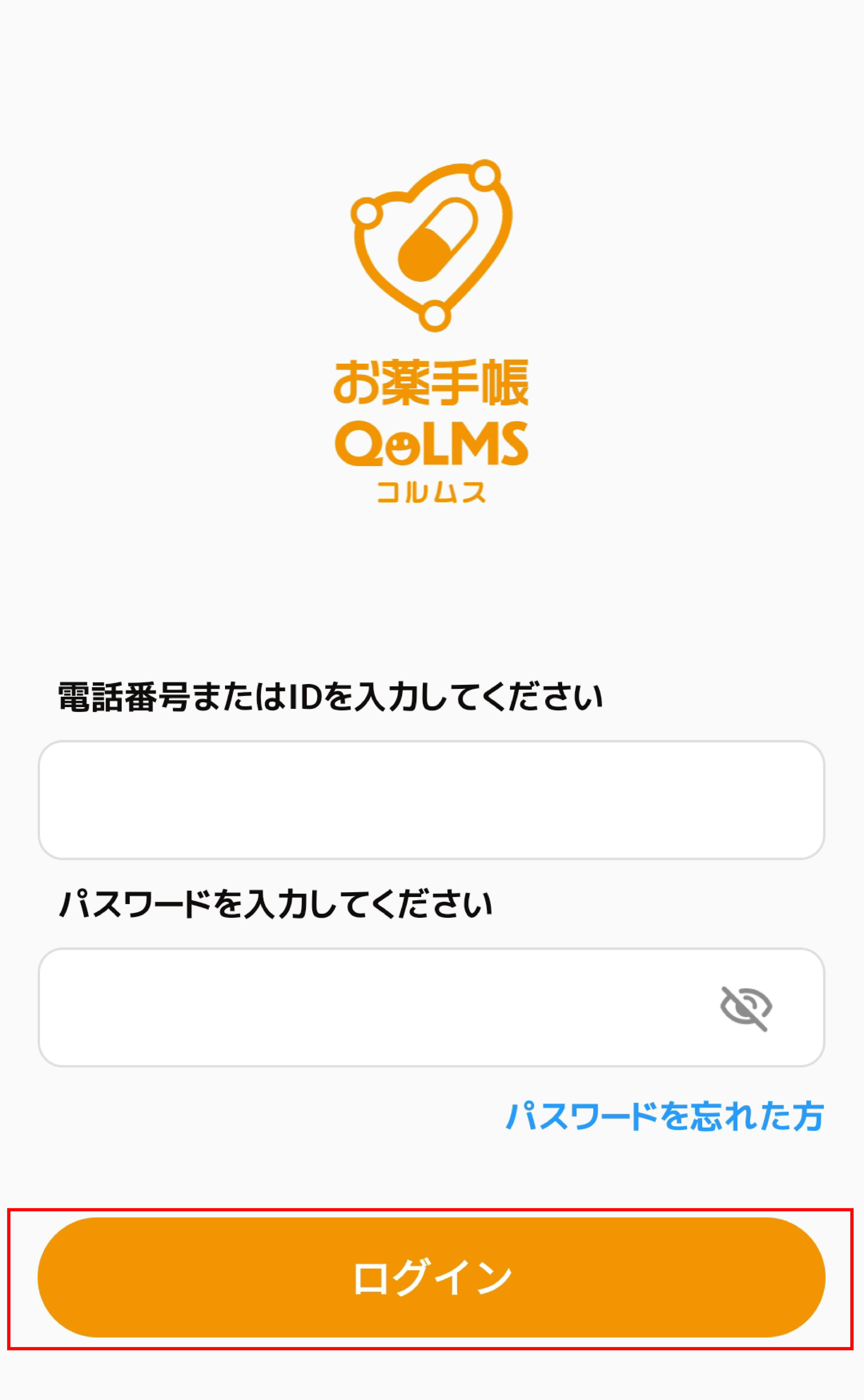 QOLMSやKAGAMINOでご使用されているIDとパスワードにてログインしご利用ください。