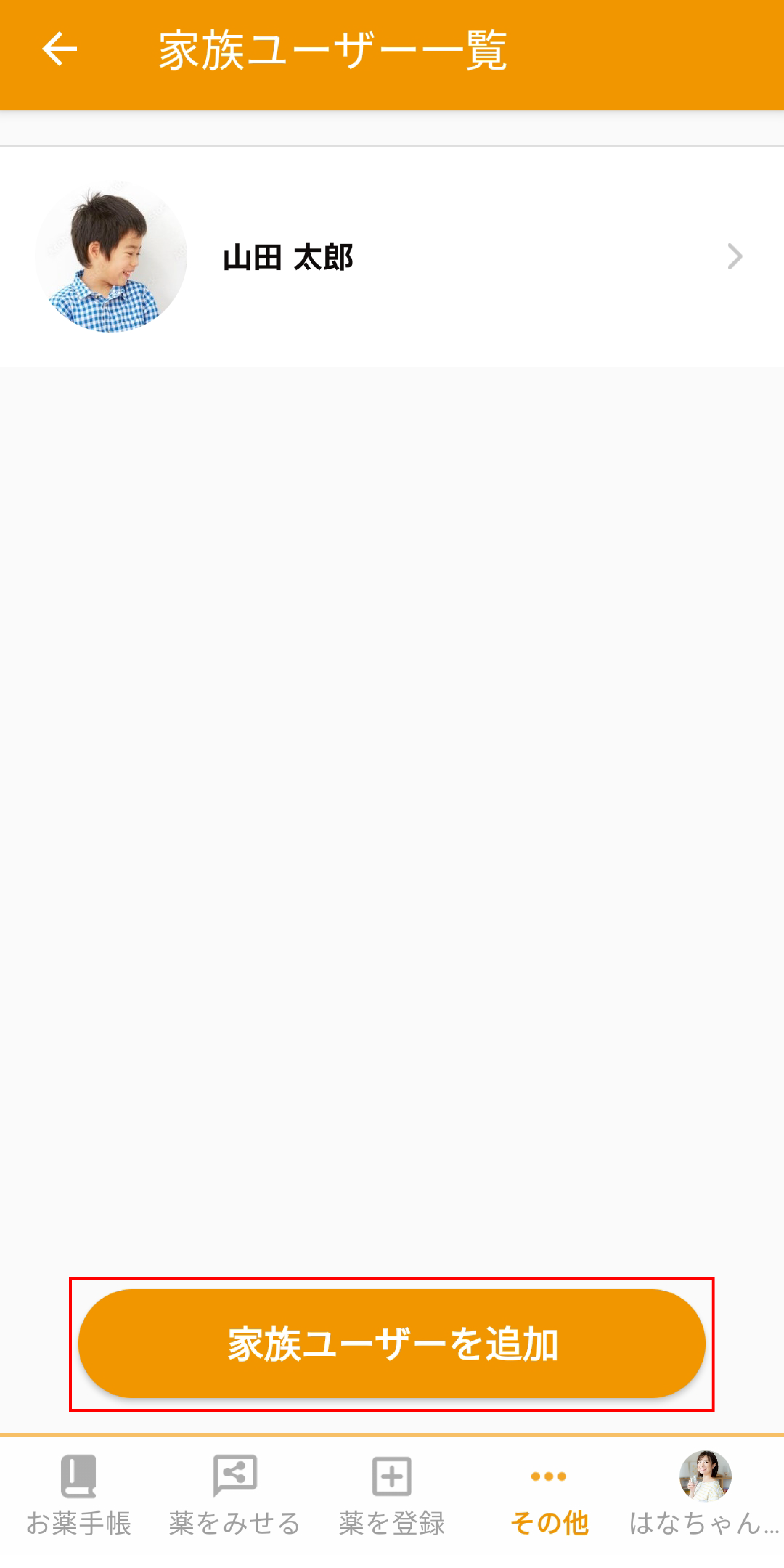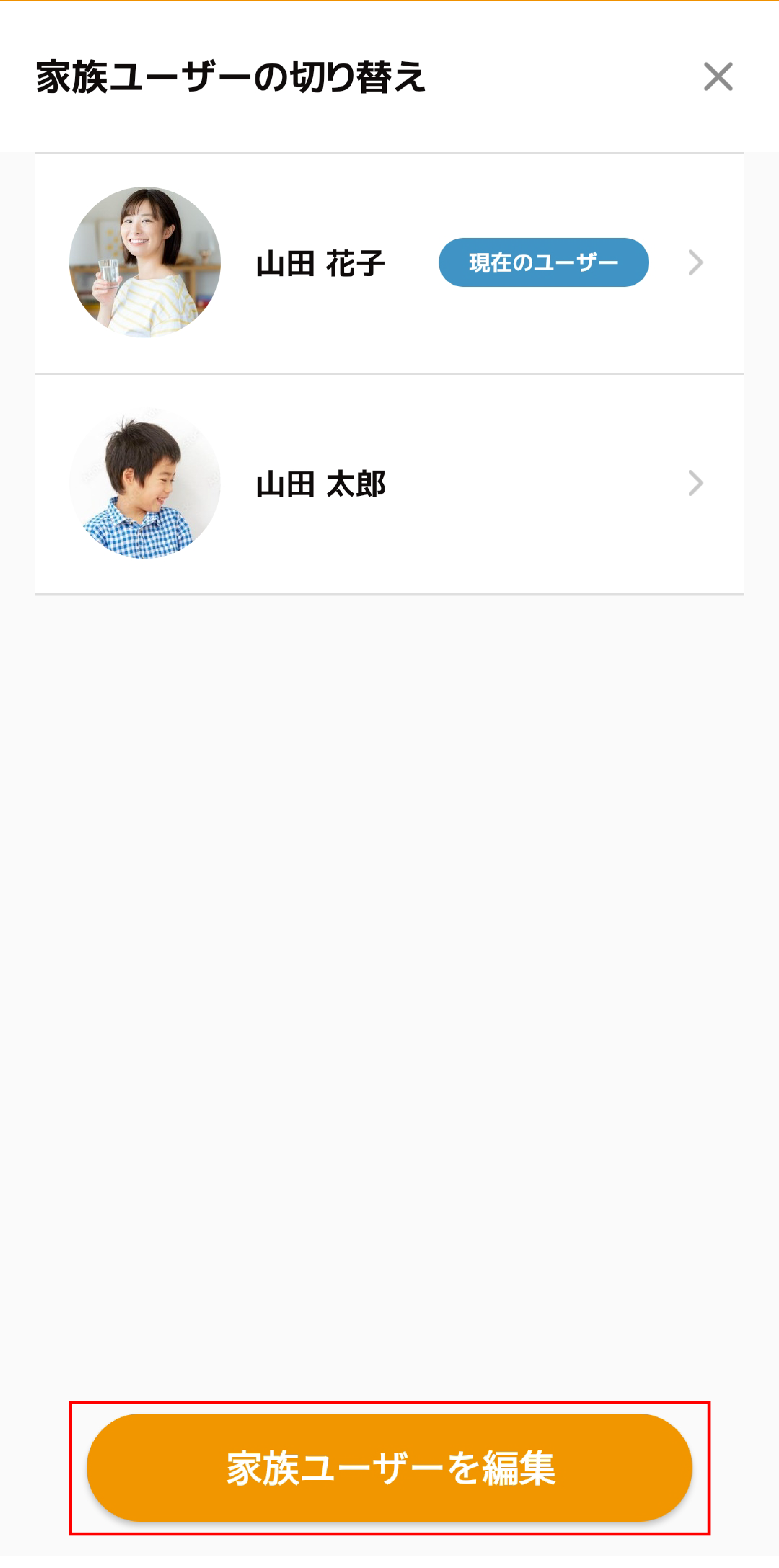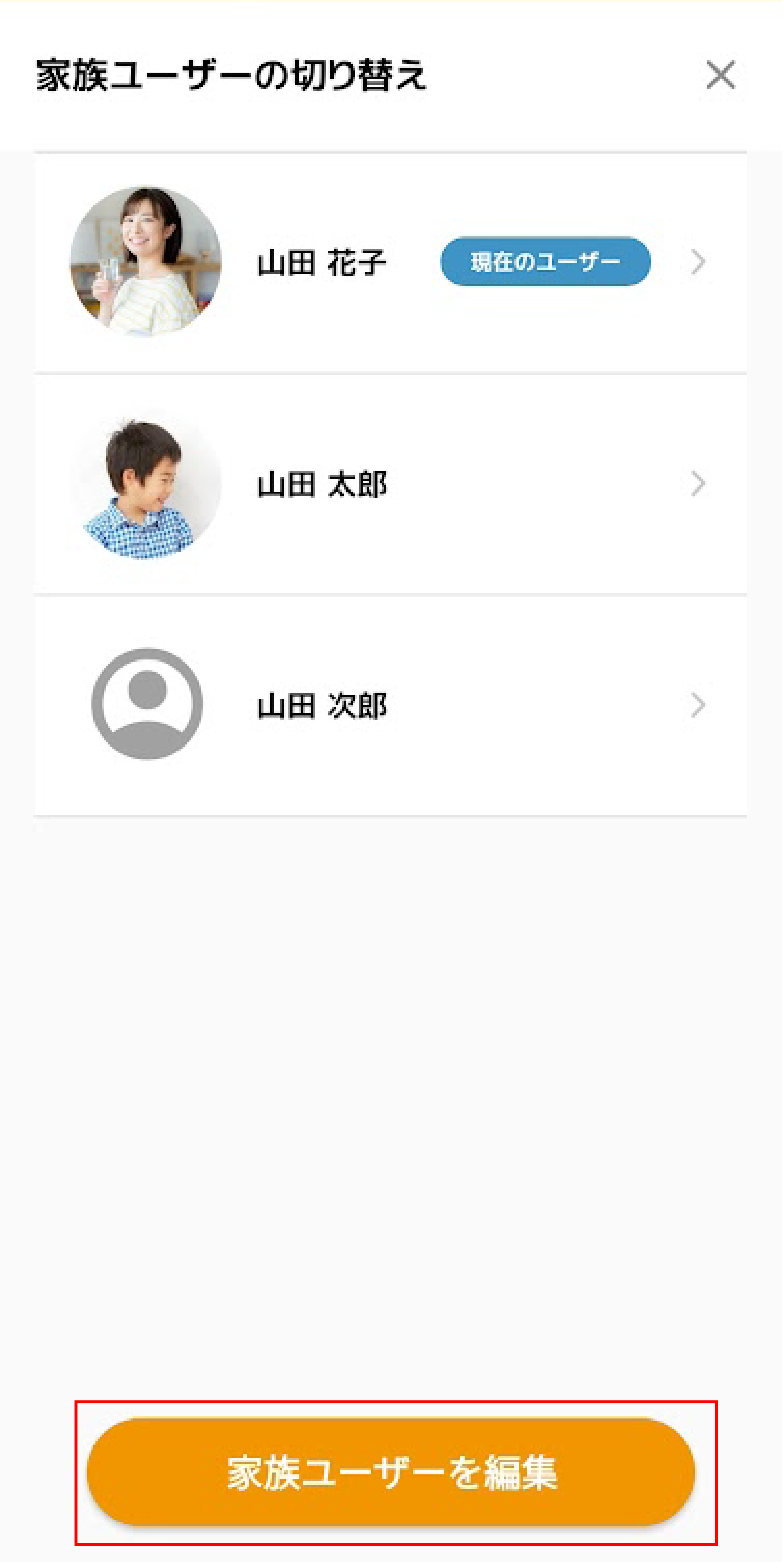 ※家族ユーザーの追加の方法は『家族ユーザーを追加する』を参照ください。