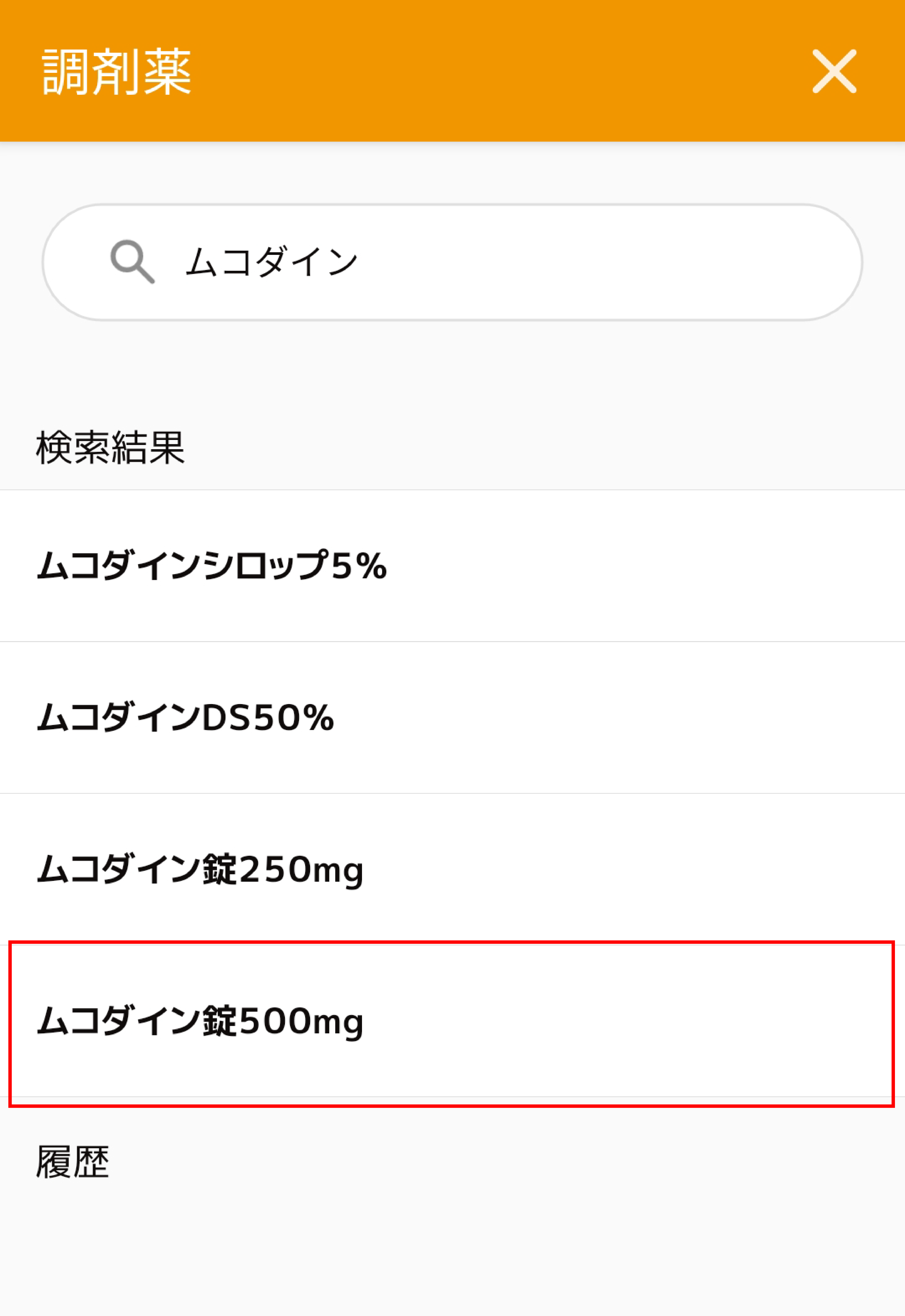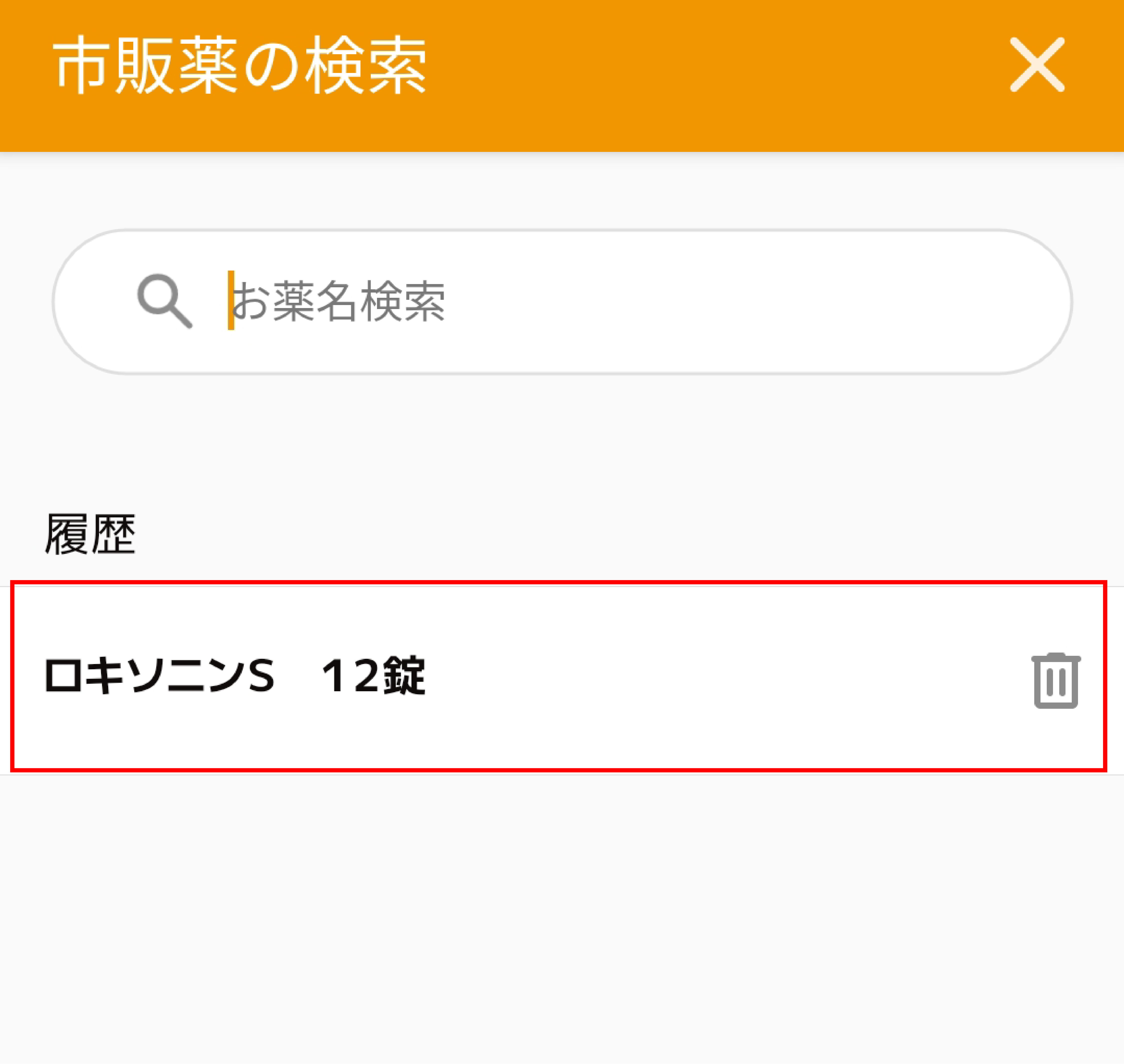 過去に検索したことのあるお薬であれば履歴から登録も可能。