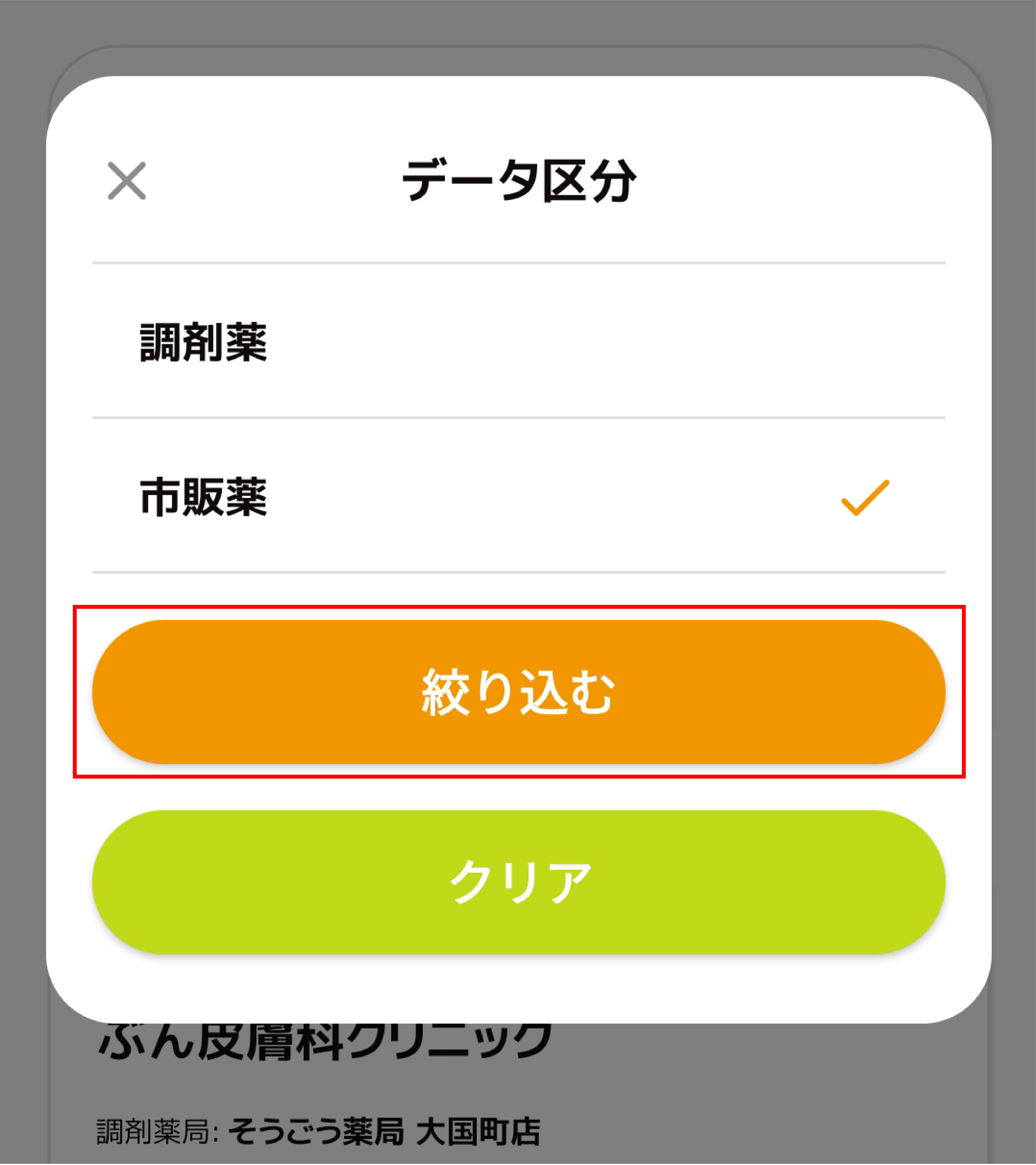 「市販薬」をタップし✔︎をつけて「絞り込む」をタップします。