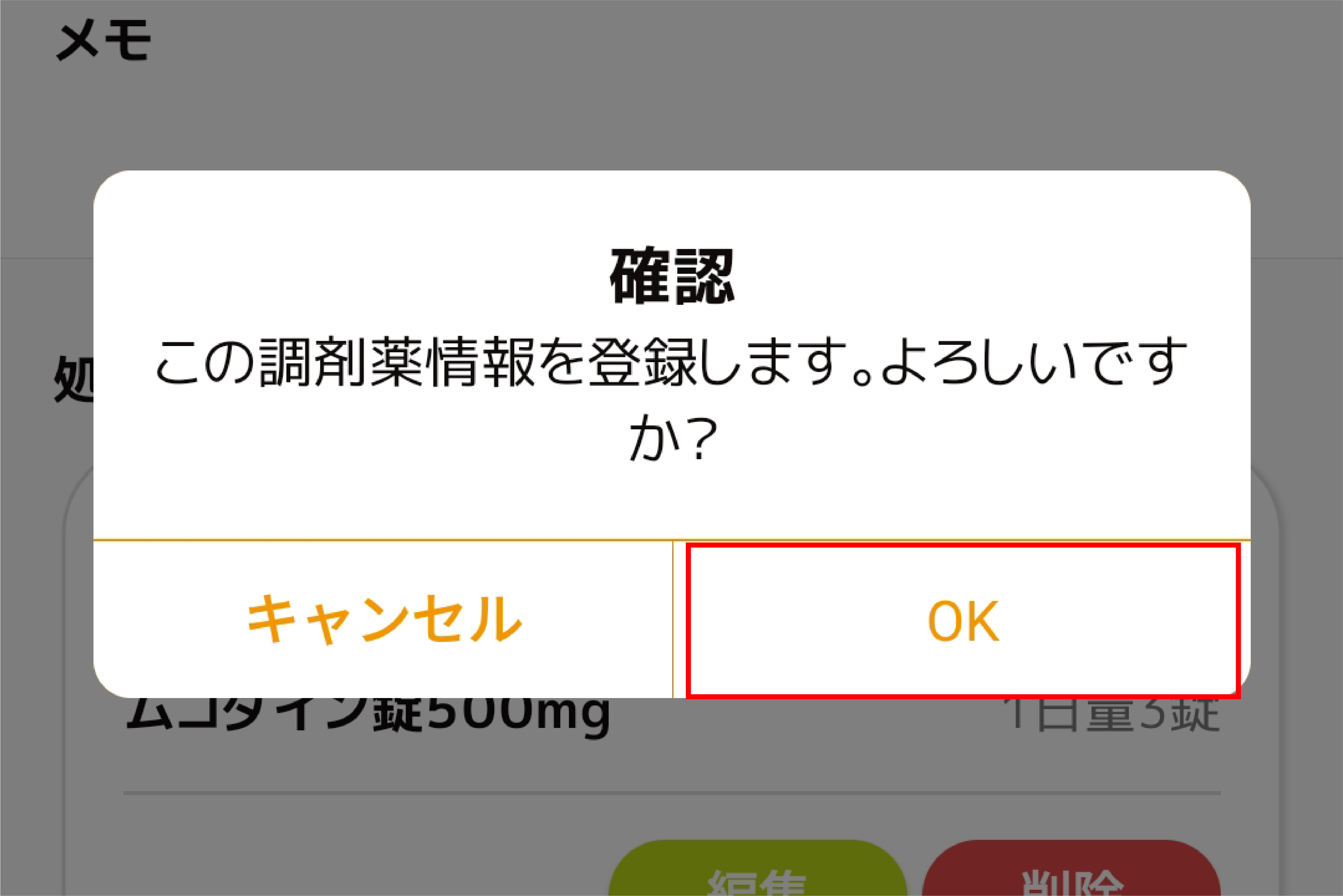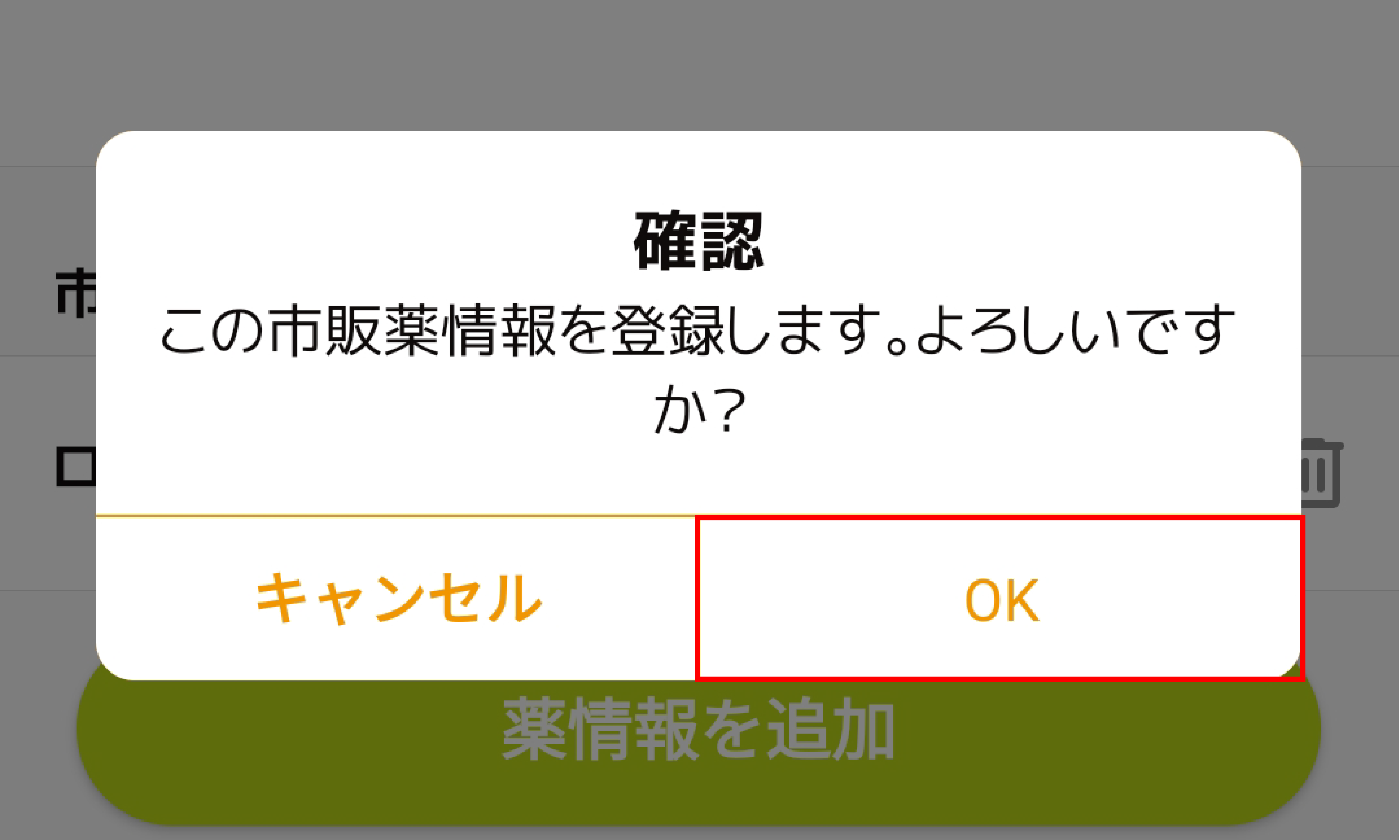 「この市販薬情報を登録します。よろしいでしょうか?」