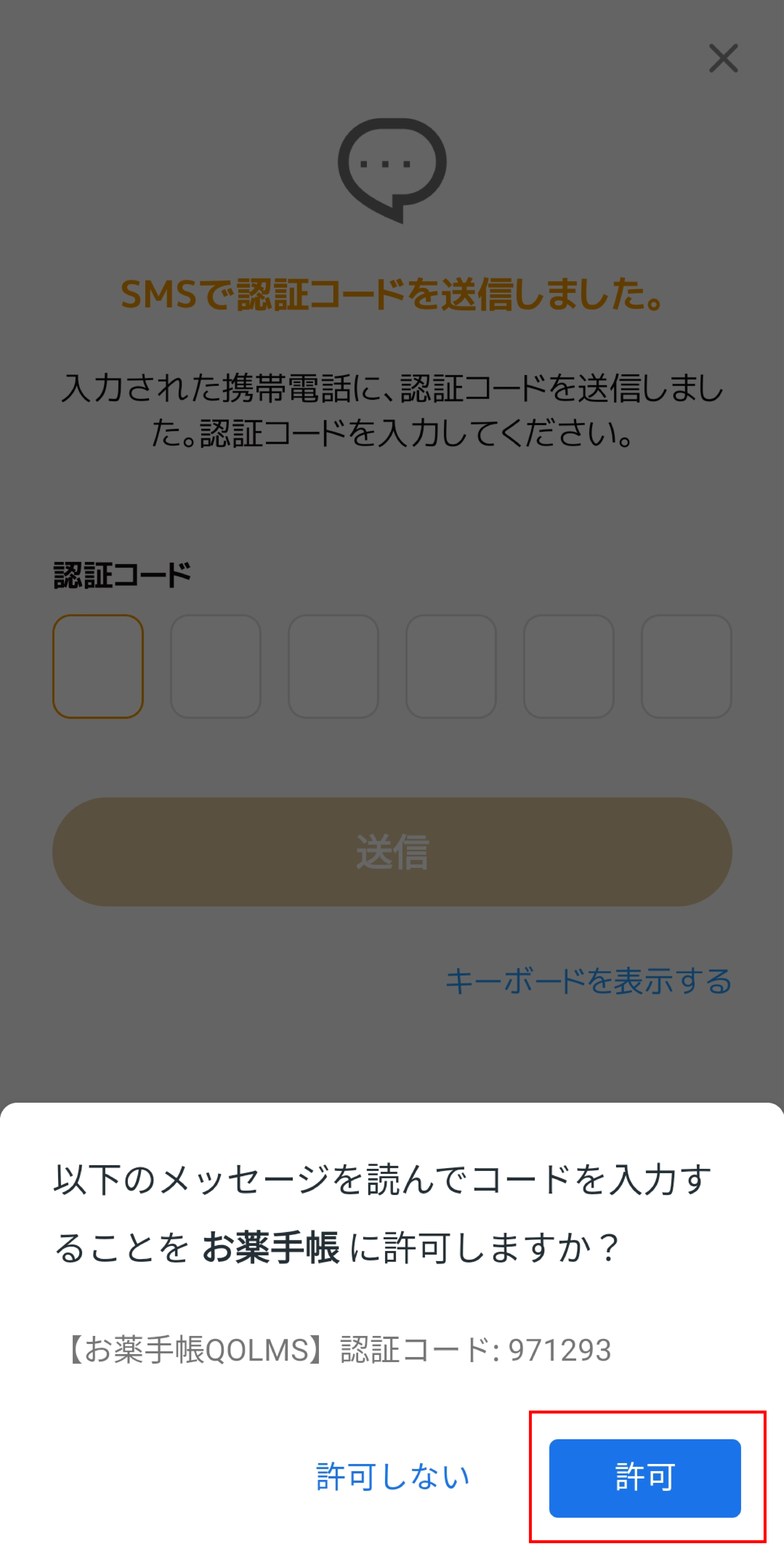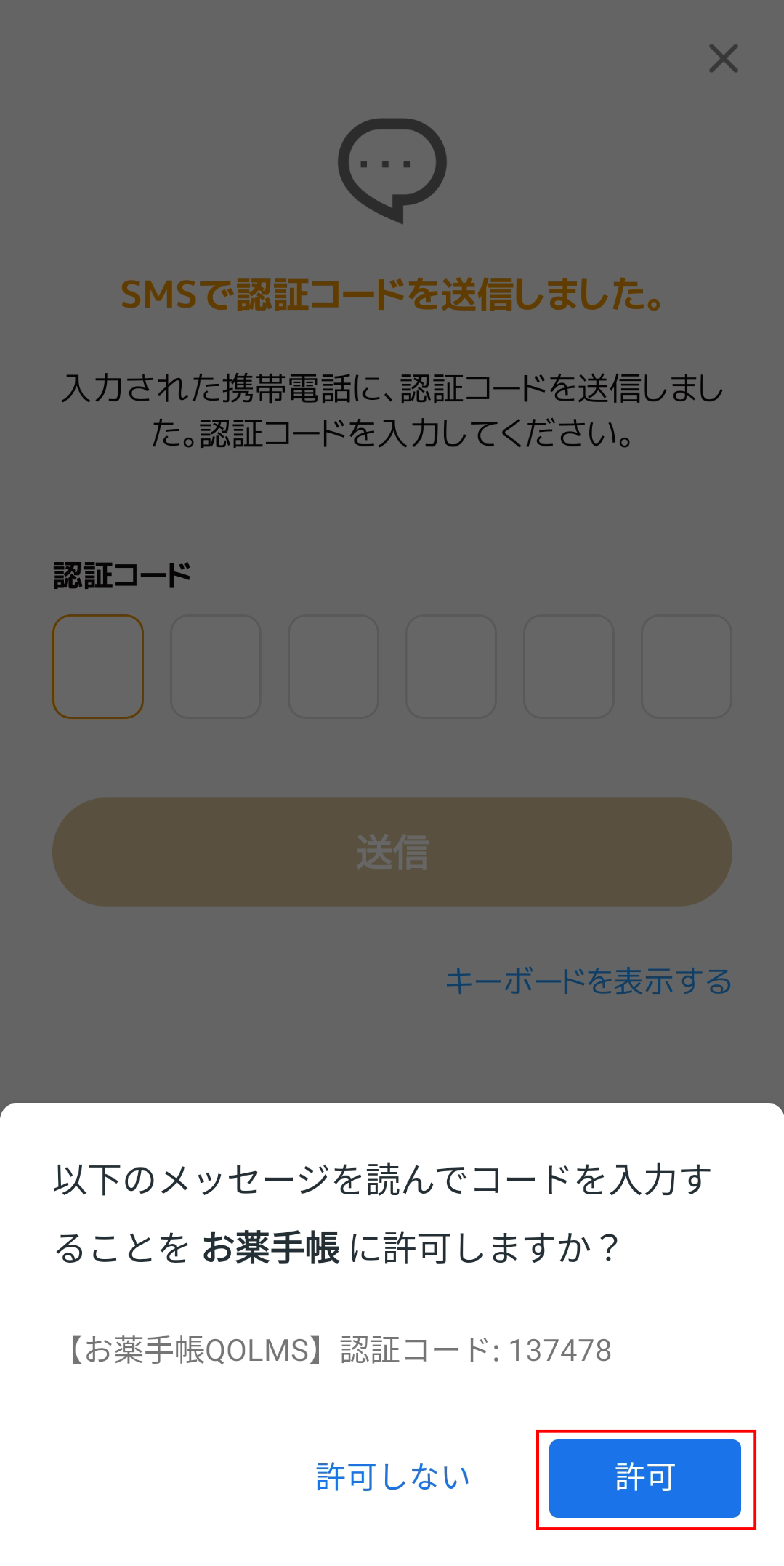 自動入力がされなかった場合は手入力し「送信」をタップしてください。