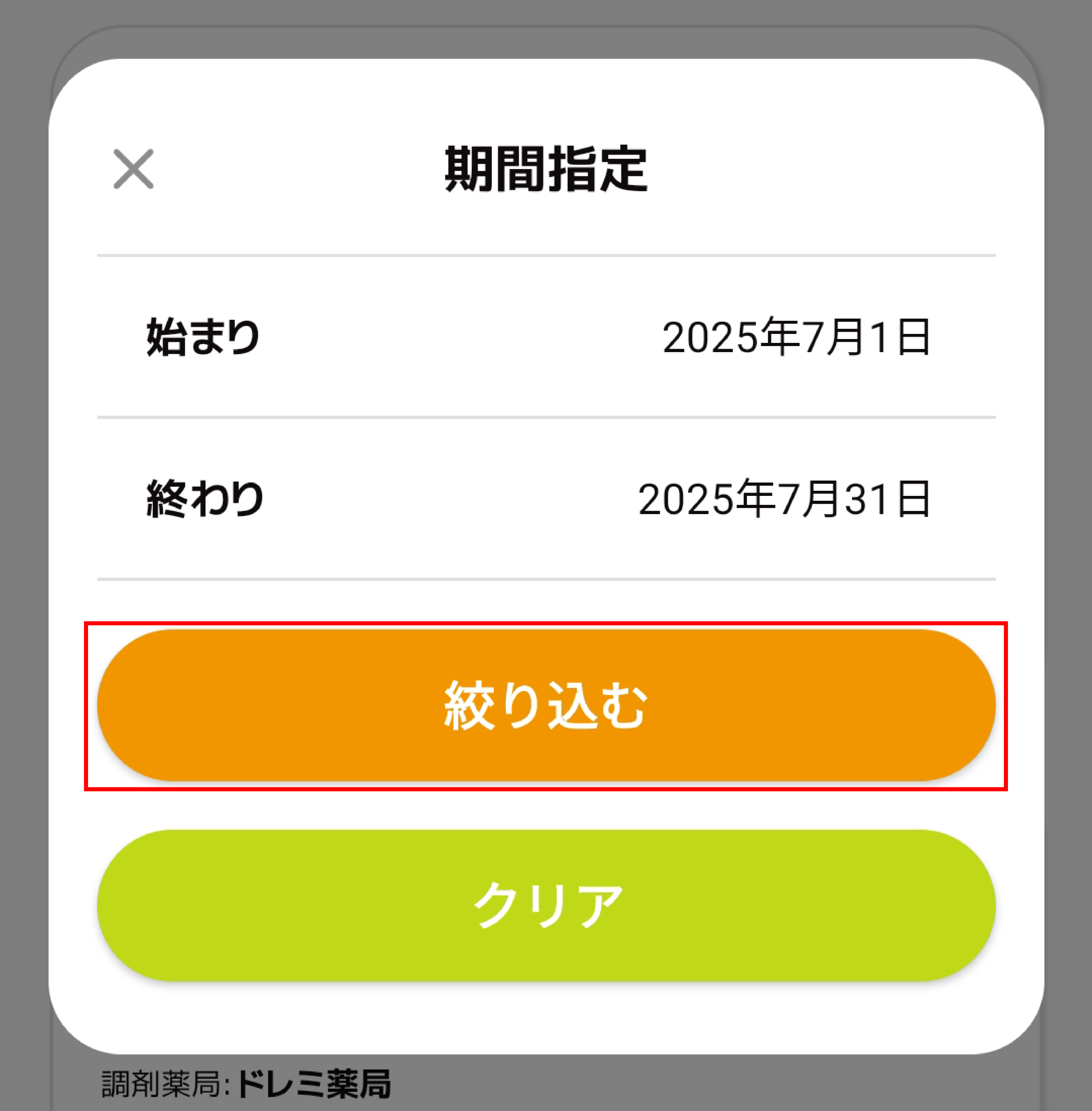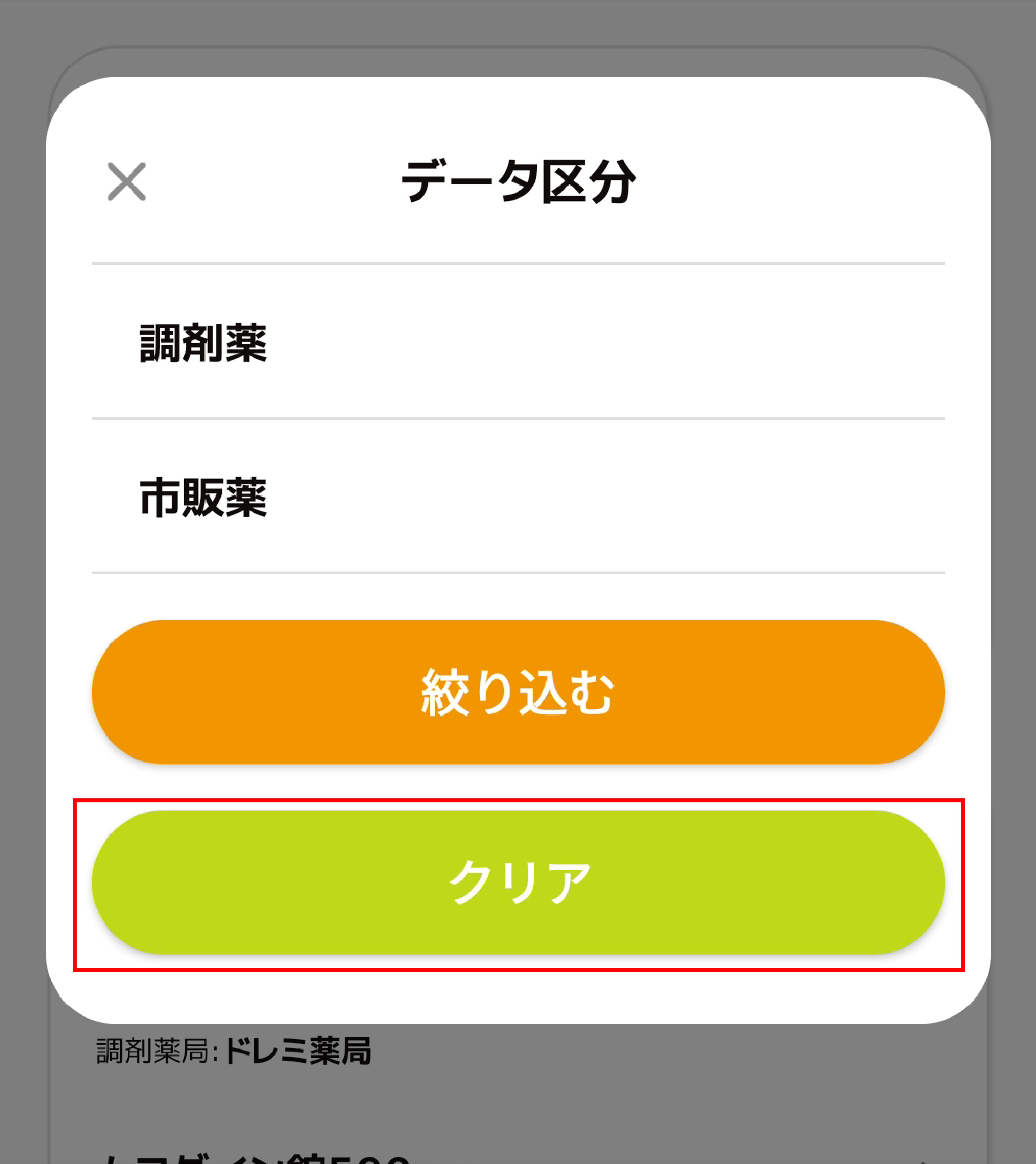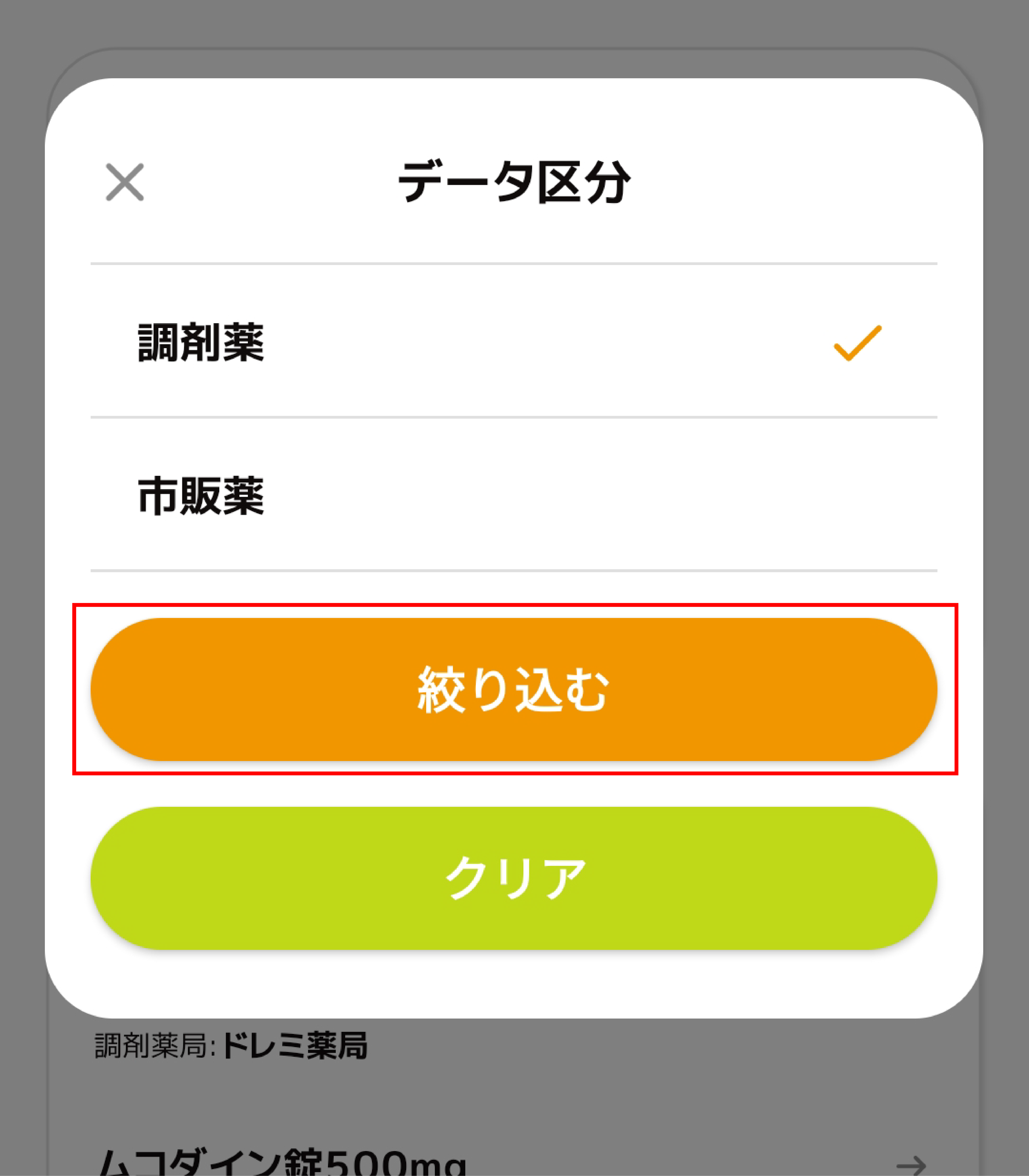 「調剤薬」をタップし✔︎をつけて「絞り込む」をタップします。