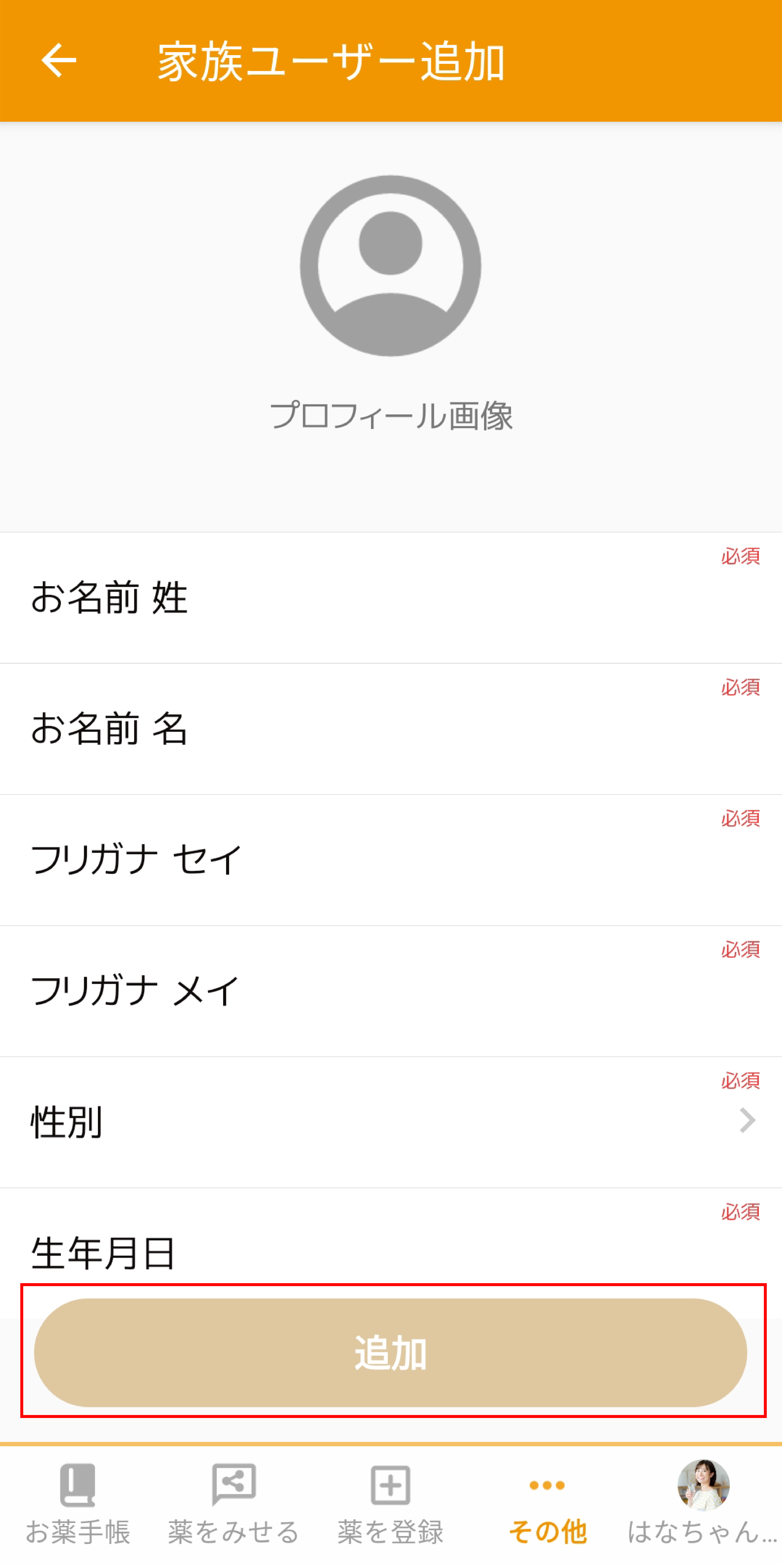 ※必須項目が全て入力されるまで追加ボタンは押せません。